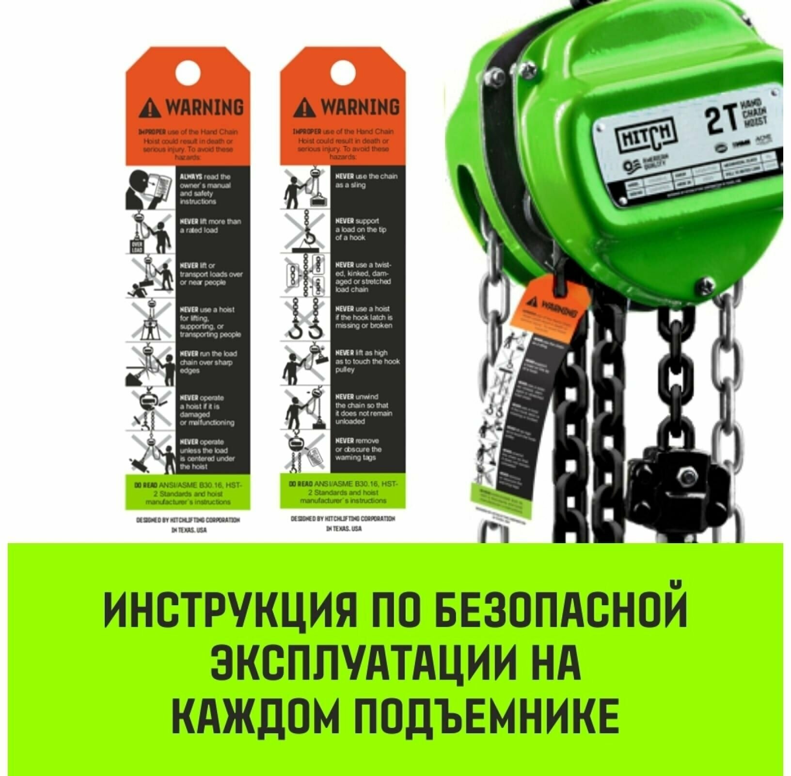 Таль ручная цепная Hitch CH100 высота подъема 3м грузоподъемность 1т