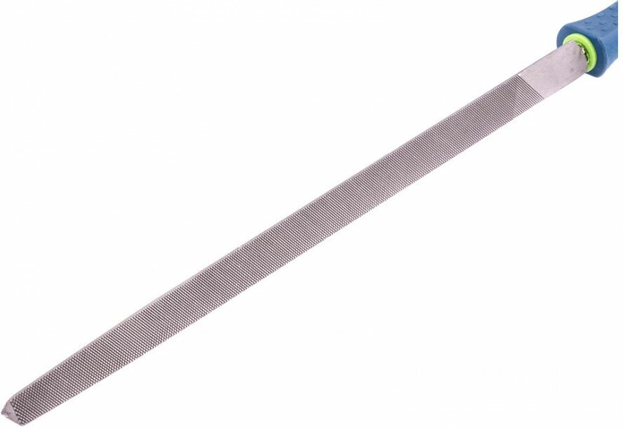 Трехгранный напильник Сибртех 16030, длина рабочей части 250 мм, с насечкой №2 и двухкомпонентной рукояткой, используется для ручной доводки металлических деталей, придания им нужной формы и размера. Оптимален для обработки треугольных отверстий, граней, пазов, внутренних углов. Насечка №2 с 13-25 зубьями на 1 см длины обеспечивает точную шлифовку после применения драчевого напильника. Инструмент будет полезен мастерам и любителям слесарного дела.Преимущества Долговечность — напильник изготовлен из высокоуглеродистой стали У13А, характеризующейся прочностью и устойчивостью к нагрузкам Высокое качество опиловки — на полотно нанесена перекрестная насечка, в которой вспомогательные мелкие зубцы обеспечивают шлифовку материала Комфорт во время работы — эргономичная двухкомпонентная рукоятка удобно лежит в руке и не выскальзывает из ладони Удобное хранение — в тыльной части рукоятки имеется отверстие для подвешивания