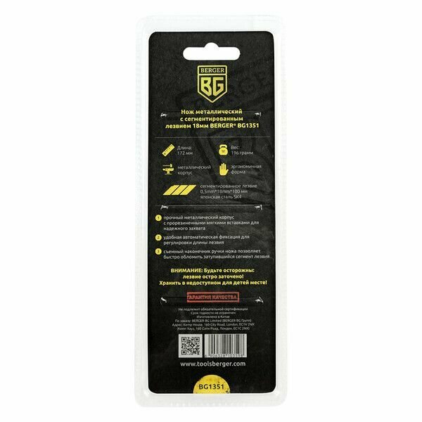 Нож металлический Berger BG1351 (с сегментированным лезвием 18 мм)