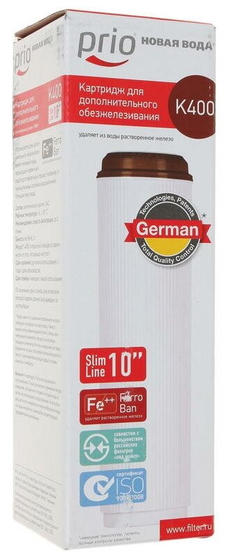 Переизбыток железа в воде может негативно сказаться и на вкусовых качествах, и на полезности воды, кроме того, такая вода будет излишне жесткой, образуя накипь на нагревательных элементах. Для устранения этих проблем используйте картридж для фильтра Новая вода K400.Преимущества Содержит гранулированный активированный уголь, помогающий дополнительно устранять неприятные сторонние запахи Высокая износостойкость