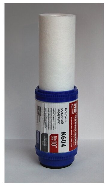 Новая вода K604 - двухступенчатый картридж очистки воды от механических примесей, а также от органических и неорганических растворенных примесей.Преимущества Очищает воду от механических примесей — песка, ила, ржавчины и т.п. , а также от широкого спектра органических и неорганических растворенных примесей (свободного хлора, хлорорганических соединений, пестицидов, нефтепродуктов, тяжелых металлов, иных органических и неорганических соединений), устраняет неприятный запах воды, улучшает ее вкус Содержит гранулированный активированный уголь, полученный из скорлупы кокосовых орехов Сорбционная емкость и эксплуатационные свойства такого угля выше, чем у обычного древесного или каменного угля