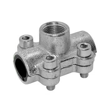 Ремонтно-монтажная обойма из ковкого чугуна с отводом; отвод с внутренней резьбой для дополнительного монтажа ответвлений.