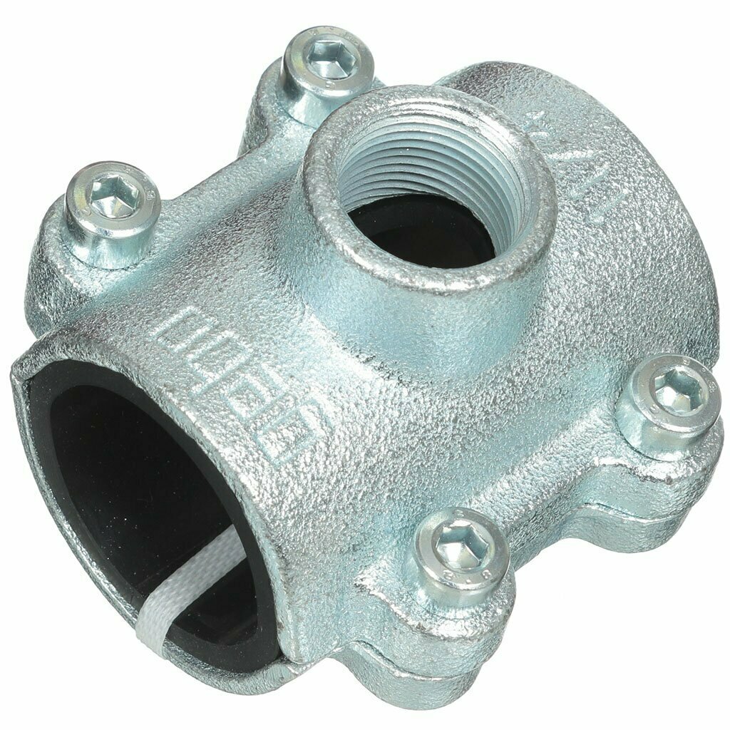 Ремонтно-монтажная обойма из ковкого чугуна с отводом; отвод с внутренней резьбой для дополнительного монтажа ответвлений.