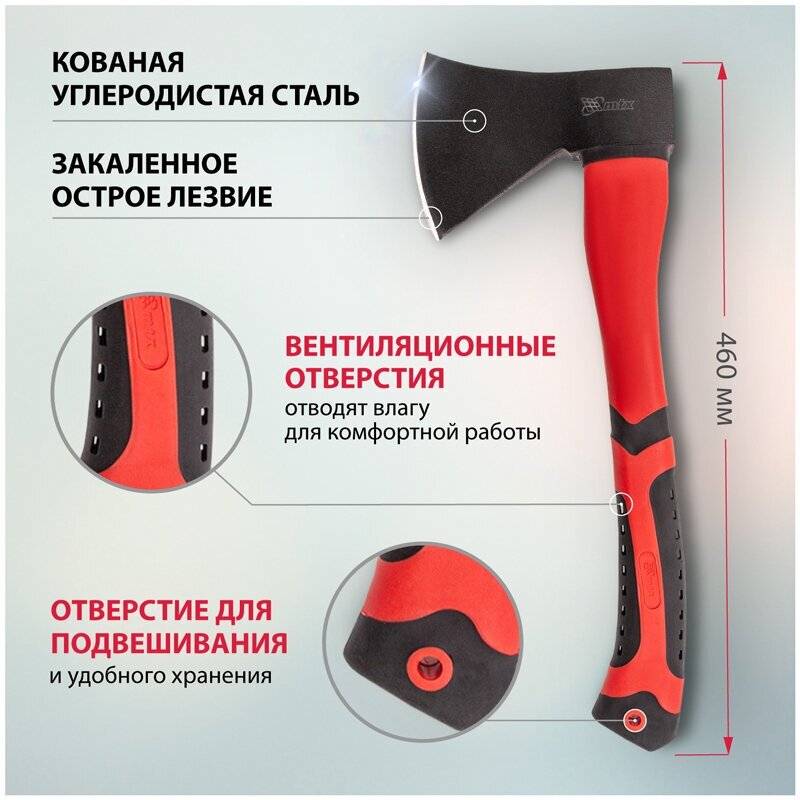 Топор с фибергласовым топорищем MATRIX 21649 - это идеальный инструмент для колки и рубки, а так же стесывания древесины. Такой топор изготовлен методом свободной ковки из стали марки 60Г. Фибергласовое обрезиненное топорище обладает высокой механической прочностью, и отлично поглощает колебания, возникающие при рубке, не передавая их на руки.Преимущества Топорище выполнено из фибергласа, оно обрезинено и обладает высокой прочностью, устойчиво к агрессивным средам и прекрасно поглощает колебания во время рубки, не передавая их на руки Данная модель топора изготовлена из прочного материала - стали 60Г методом свободной ковки Твердость составляет 50 HRc Долгий срок службы Малый вес Износостойкость