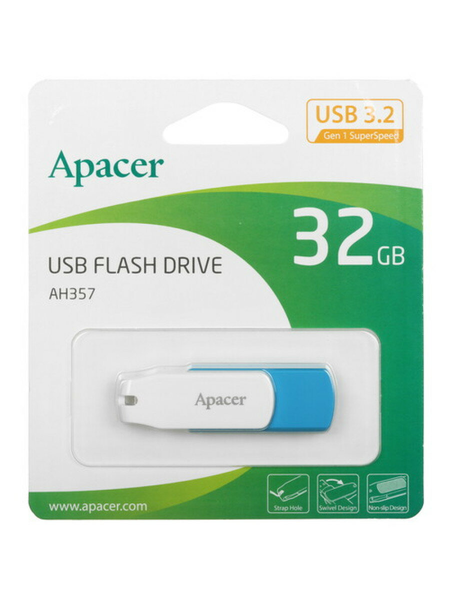 Накопитель USB 3.1 APACER 32GB Blue/White (AP32GAH357U-1) AH357 32GB (синий)