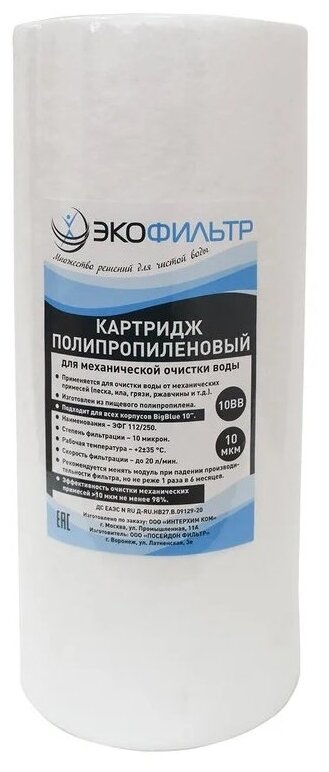 На сегодняшний день товар «Элемент фильтрующий EcoFilter "ЭФГ" 112/250 5 мкн (для BB10) 0614 ЭФГ 112/250 5 мкн (д» можно купить с кешбеком в 2 магазинах: bigam, Яндекс.Маркет