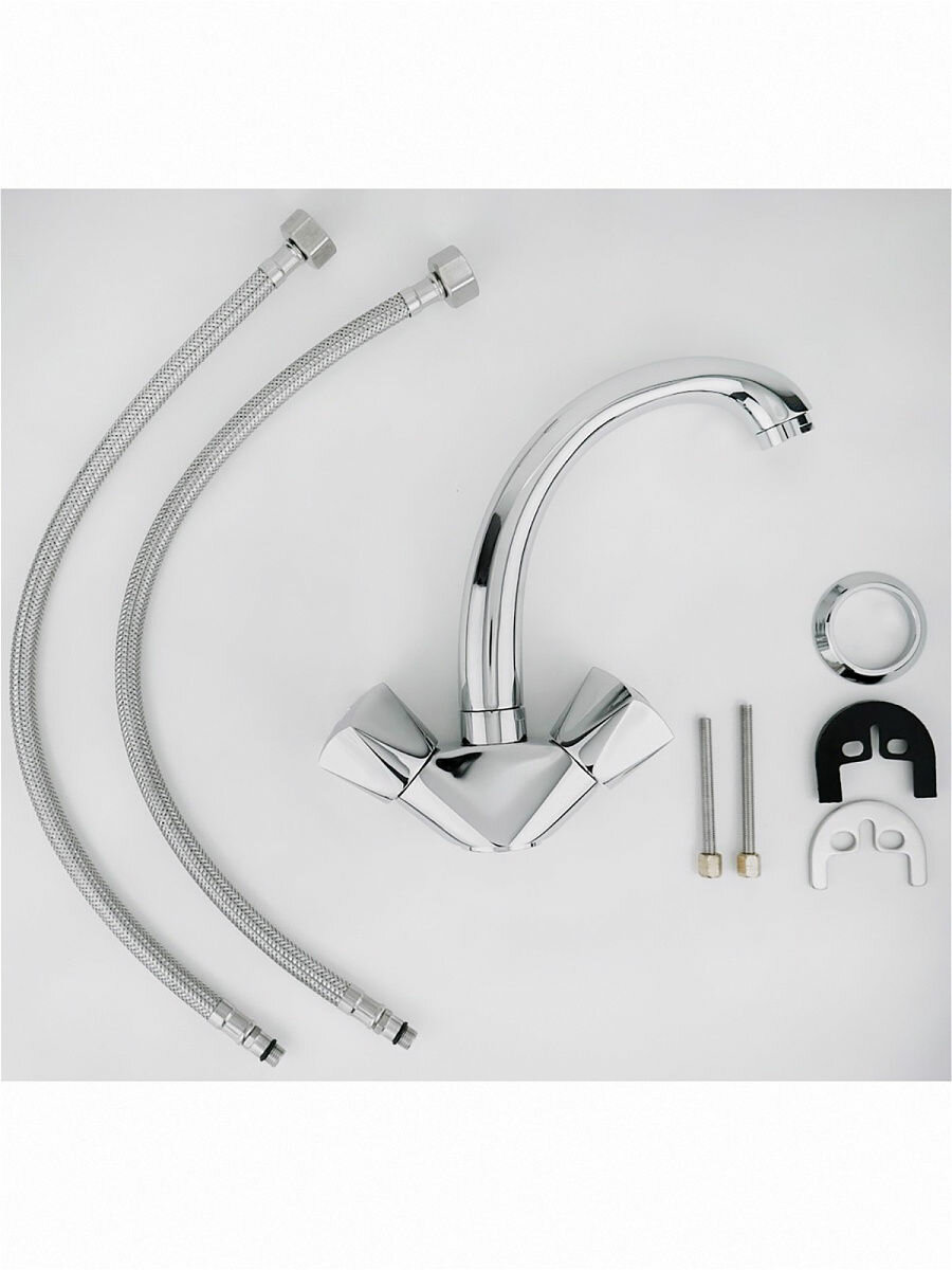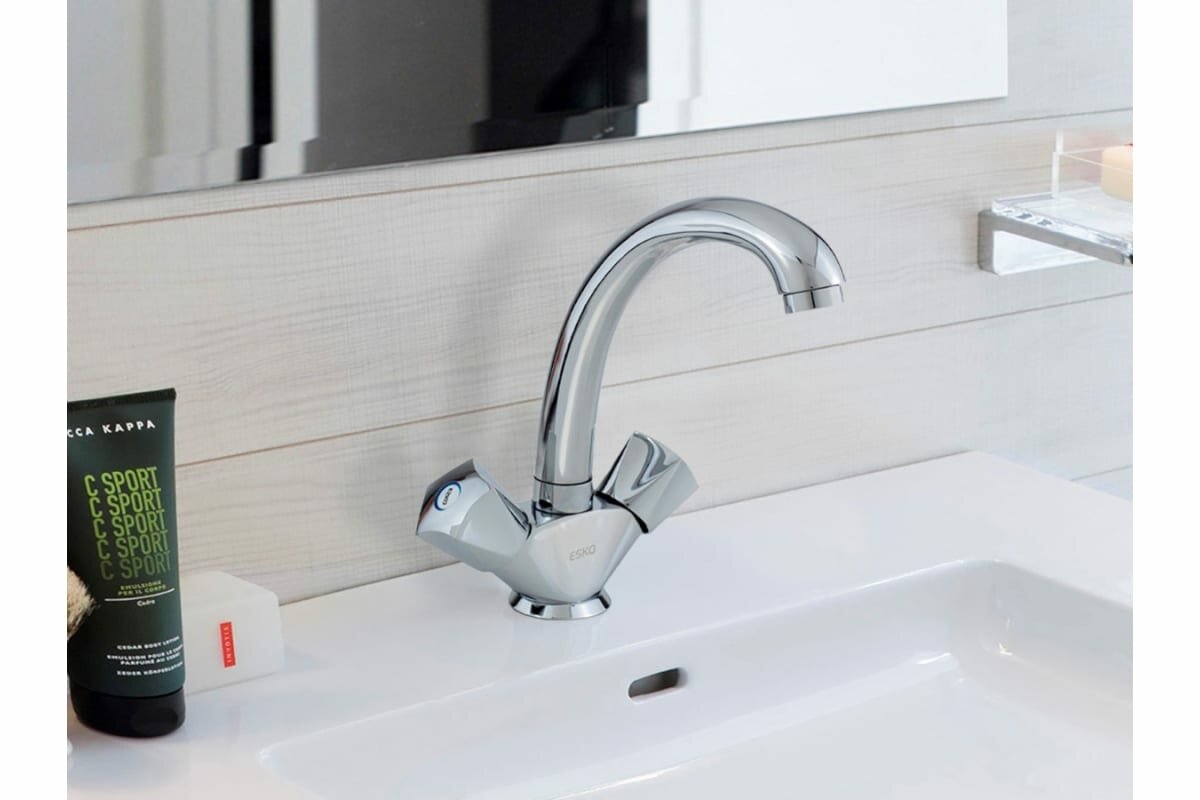 Смеситель Esko Moscow MS 26 – двухрычажный кран, предназначенный для установки на кухонные раковины и умывальники в ванных комнатах. Имеет традиционную форму корпуса и излива, классические поворотные вентили. Смеситель Esko Moscow MS 26 выполнен из высококачественной латуни с хромированным покрытием в современном дизайне. Благодаря лаконичному исполнению гармонично смотрится в помещениях в любом стиле. Отлично сочетается с другой хромированной сантехникой.Преимущества Удобный поворотный излив высотой 142 мм Металлические ручки с термоизоляцией Керамический картридж с повышенной износостойкостью Хромированное покрытие, устойчивое к образованию сколов, царапин и потертостей Традиционный монтаж на горизонтальную поверхность на одно отверстие Аэратор для рассечения струи и экономного расхода воды