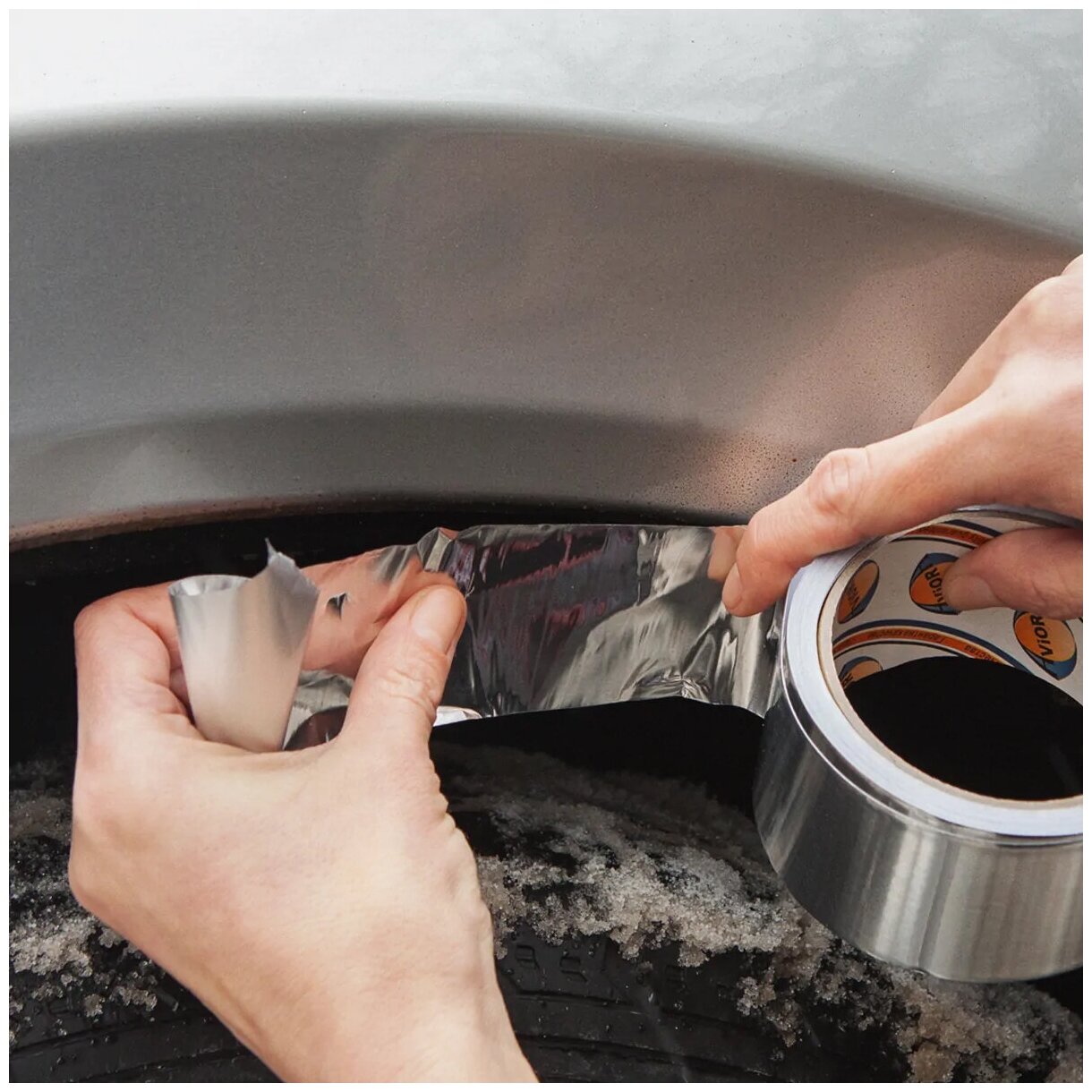 Алюминиевая лента на клейкой основе представляет собой 2-сторонний рулонный материал из алюминиевой фольги с клеевым слоем, защищенным силиконизированной бумажной полосой. Материал предназначен для герметизации стыков и технологических швов при монтаже воздуховодов, инженерных коммуникаций, отражающей изоляции, при строительстве кровельных и подкровельных конструкций, а также при выполнении ремонтных и восстановительных работ. Продукция отличается повышенной влагостойкостью и жаропрочностью, устойчивостью к УФ лучам; обеспечивает превосходную гидро- и пароизоляцию любой поверхности: пластик, металл, дерево. Наружный слой самоклеящейся алюминиевой ленты можно окрашивать под цвет кровли, несущих стен, трубопроводов и вентиляционных каналов.