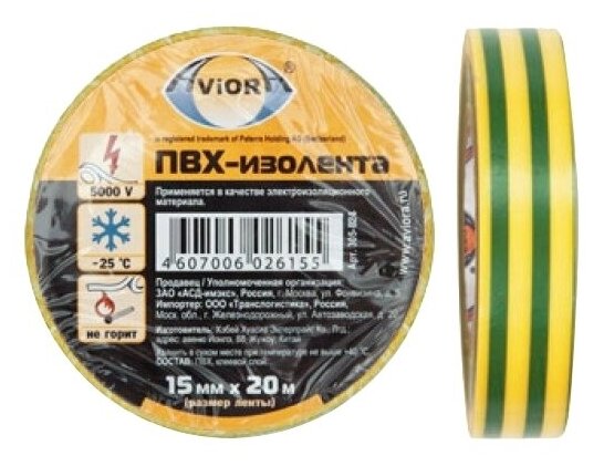 Изолента ПВХ Aviora устойчива к климатическому старению, морозостойкая, пожаробезопасная. Обеспечивает высокую механическую защиту. Отсутствие вредных для человека веществ подтверждено сертификатом ROHS. Вещества, входящие в состав основы изоленты и клеевого слоя, препятствуют возгоранию и плавлению ленты (горение возможно только при воздействии открытого пламени). Цвет желто-зеленыйПреимущества Имеет хорошую клейкость – отлично держится на пластике, металле, плитке, стекле, картоне и других гладких поверхностях. Нетоксична – не имеет резкого запаха и при использовании в указанном температурном диапазоне не выделяет вредных примесей в опасных концентрациях. Пожаробезопасна – при сильном нагреве провода в месте пробоя изоляции не возникнет возгорания. Изолента может воспламениться только при воздействии открытого огня, но быстро затухает.