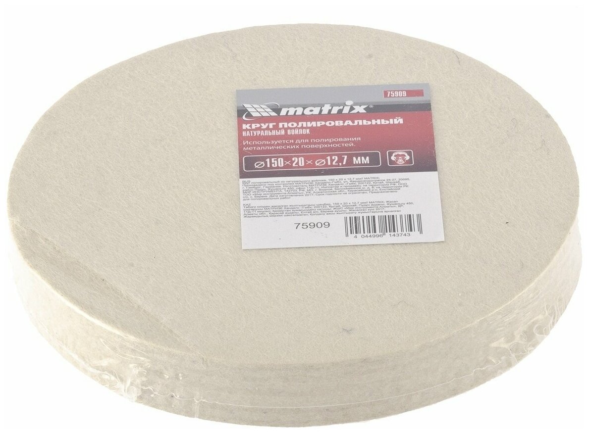 | Прочие особенности и свойства | Полировальный диск изготовлен из чистой шерсти.,Диск устанавливается на точильный станок и применяется при полировальных работах. |