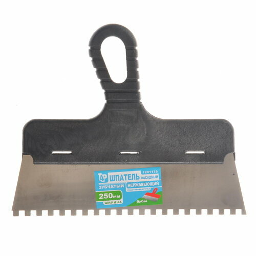 Фасадный шпатель Лакра 1201176 (ширина лезвия 250 мм нержавеющая сталь зубчатый тип пластиковая ручка) 250 мм, пласт. ручка 1201176