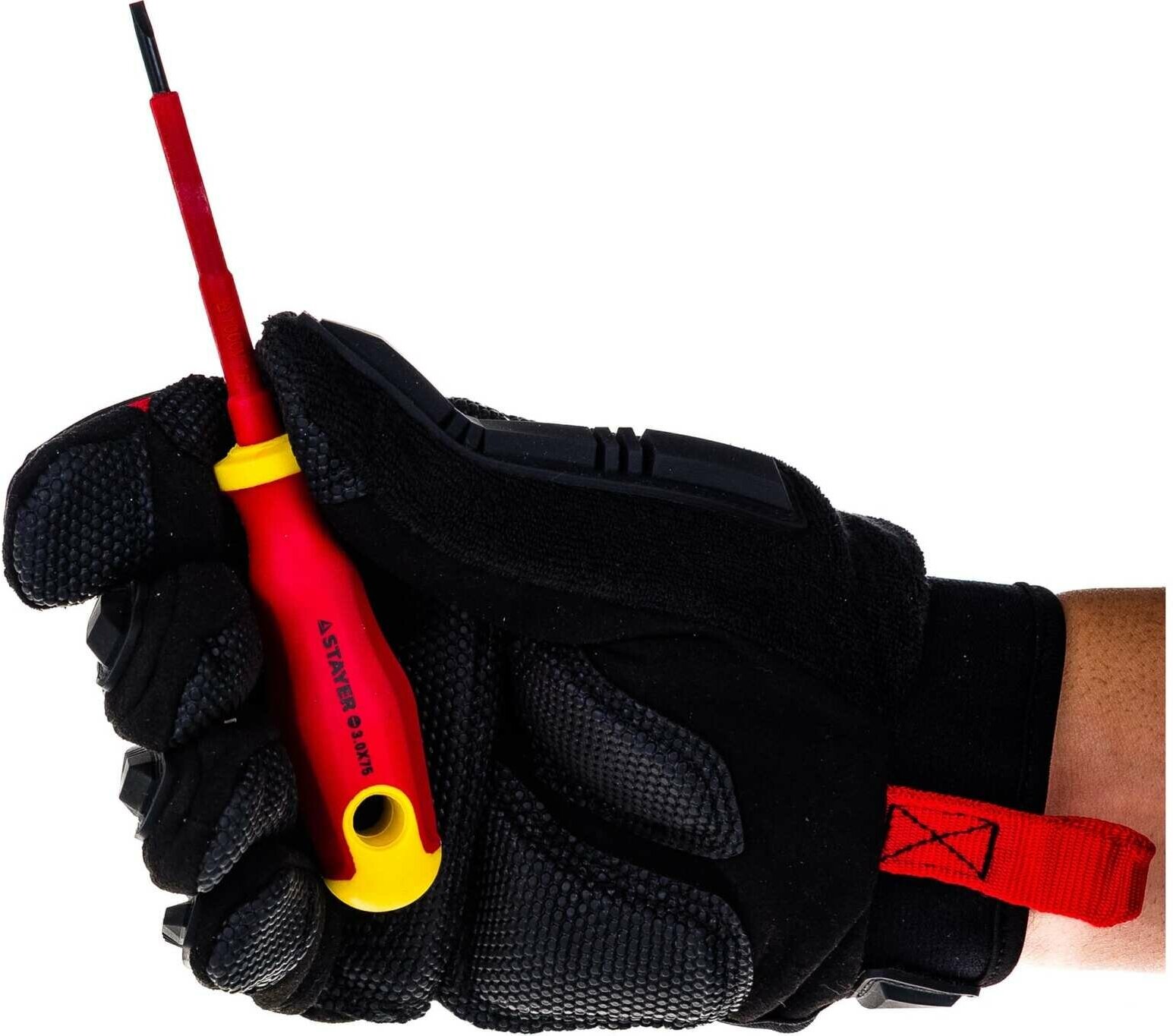 Диэлектрическая отвертка SL 3.0 х 75 мм STAYER 25141-03-07_z01 - инструмент для выполнения электромонтажных работ. Имеет плоский шлиц на стержне из Cr-V стали. Специальная изоляция гарантирует безопасность при эксплуатации данной отвертки. Рукоятка удобно лежит в ладони и не выскальзывает благодаря противоскользящему покрытию.Преимущества Специальная изоляция гарантирует безопасность при эксплуатации данной отвертки Рукоятка удобно лежит в ладони и не выскальзывает благодаря противоскользящему покрытию Наличие отверстия для подвески Намагниченный оксидированный наконечник - удобство в работе Долгий срок службы