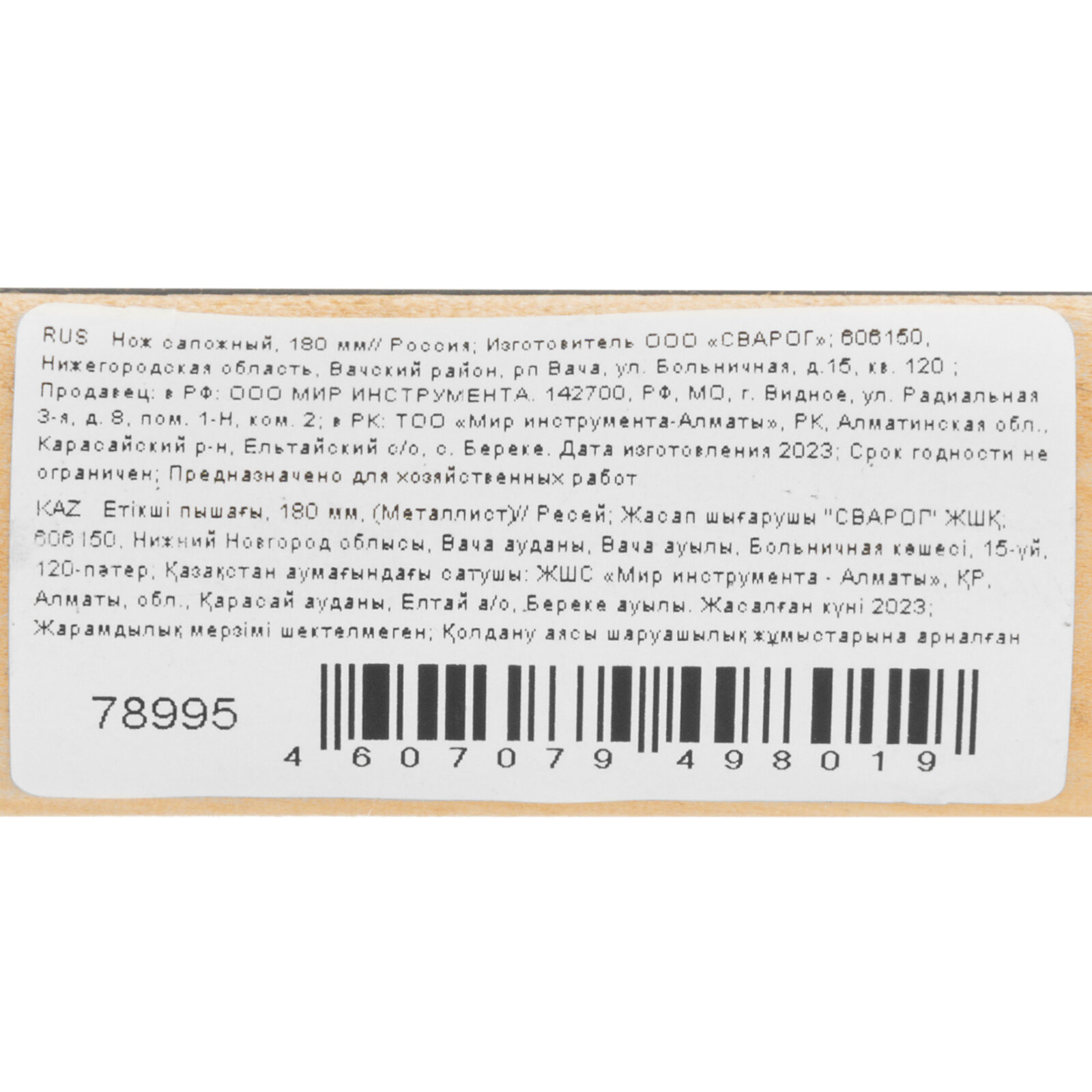 | Комплект поставки | нож сапожный - 1 шт |
