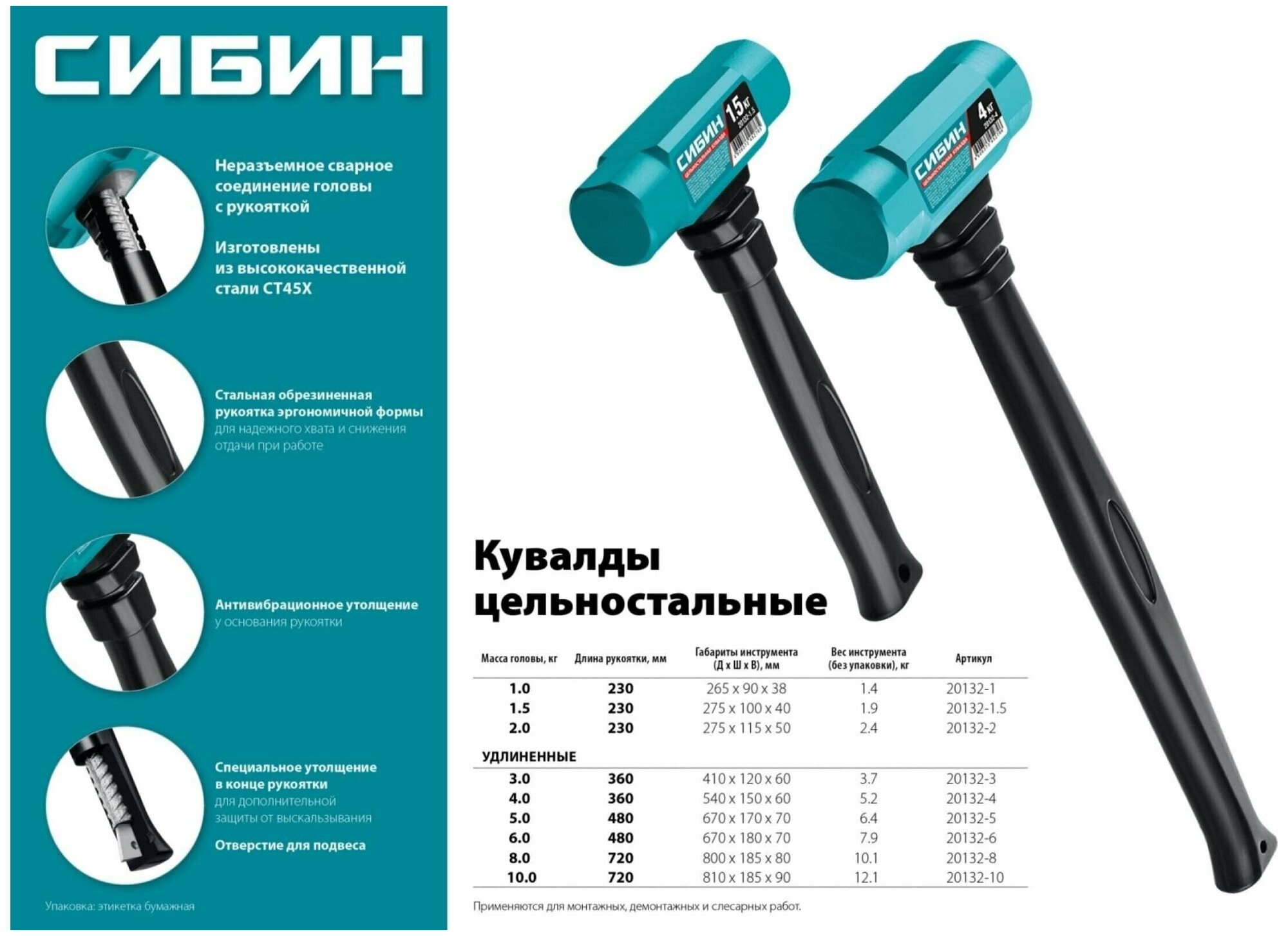 Кувалда цельностальная Сибин 20132-4, с удлинённой рукояткой - представляет собойнадежный инструмент для слесарных работ.Инструмент имеет цельностальную конструкцию и неразъемное сварное соединение кованой головы с рукояткой, что обеспечивает прочность и долговечность.Преимущества Кованый боек отличается надежностью и твердостью Обрезиненная рукоятка обеспечивает надежный захват У основания рукоятки имеется антивибрационное утолщение, а на конце рукоятки – специальное утолщение, для дополнительной защиты от выскальзывания