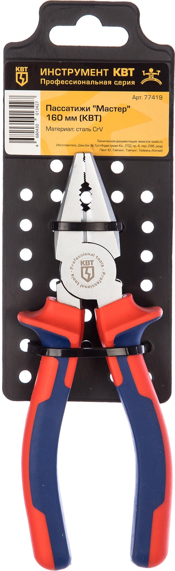 Слесарно-монтажные пассатижи КВТ Мастер 160 мм 77419 Мастер