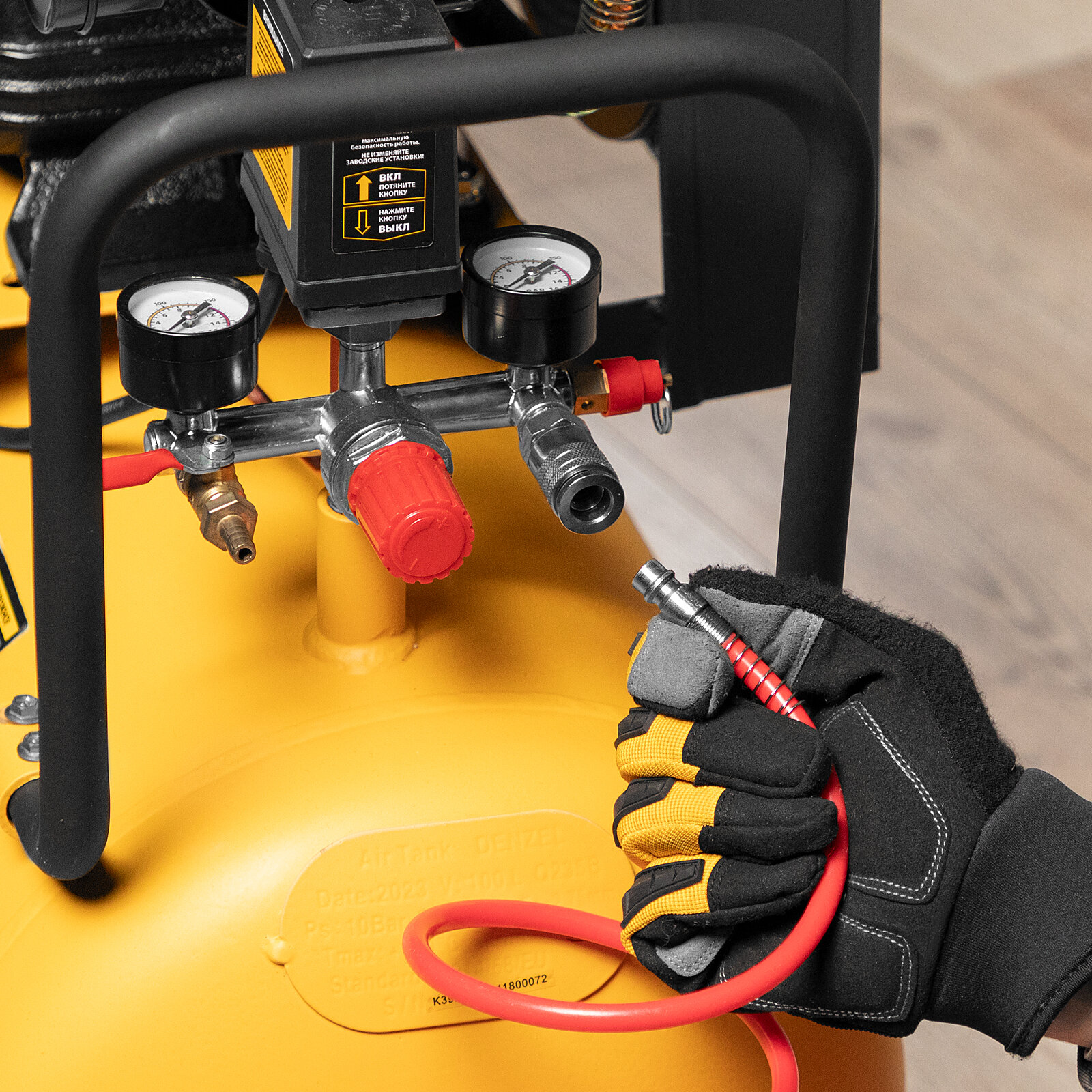 и штуцер «Елочка» обеспечивают легкое соединение с пневмоинструментами, а