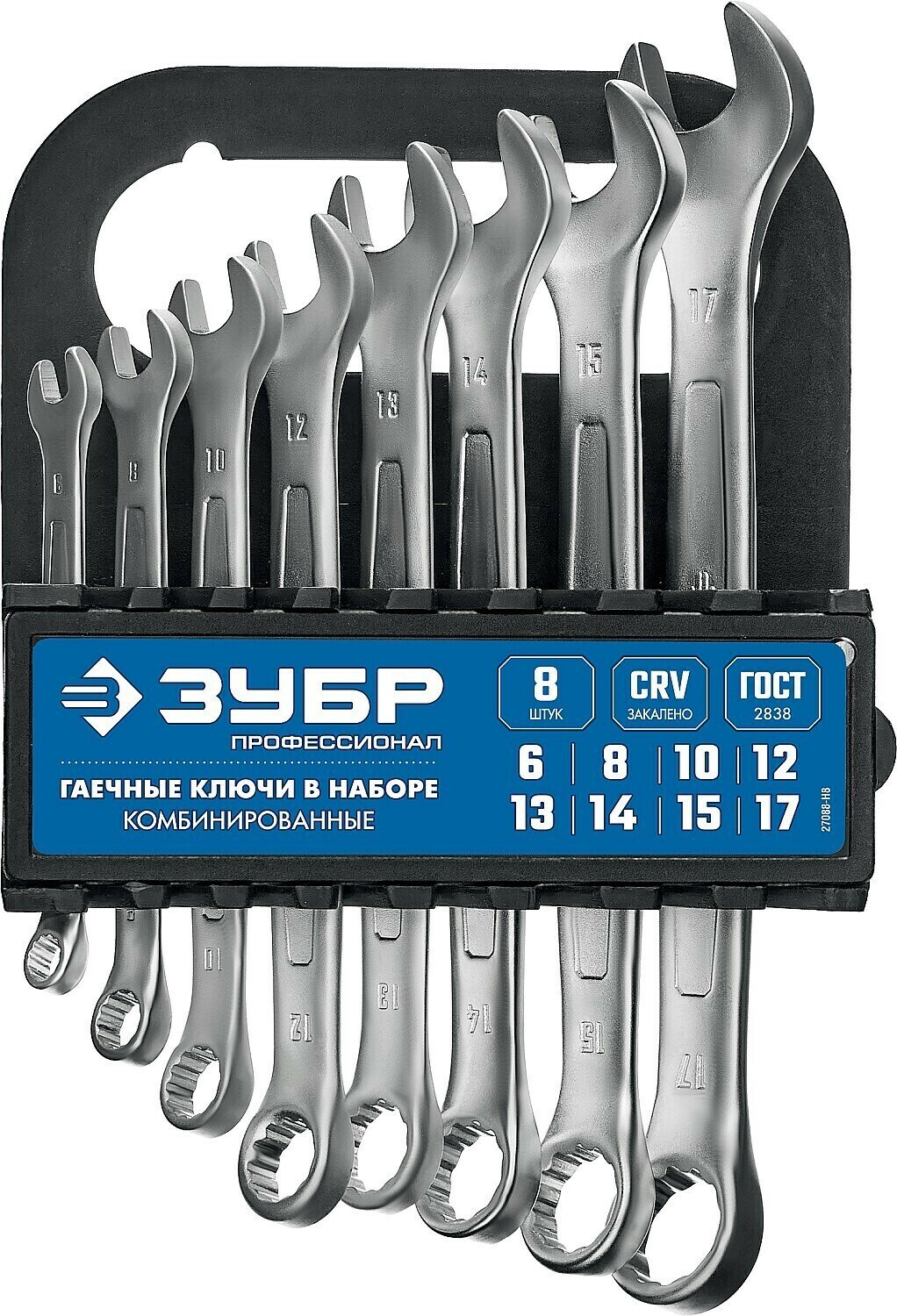 Материал ключей – хромованадиевая сталь. Хромированное покрытие для защиты от коррозии. Наборы комбинированных ключей ЗУБР предназначены для работы с шестигранным крепежом любой разновидности. Размер, мм: 6-17.