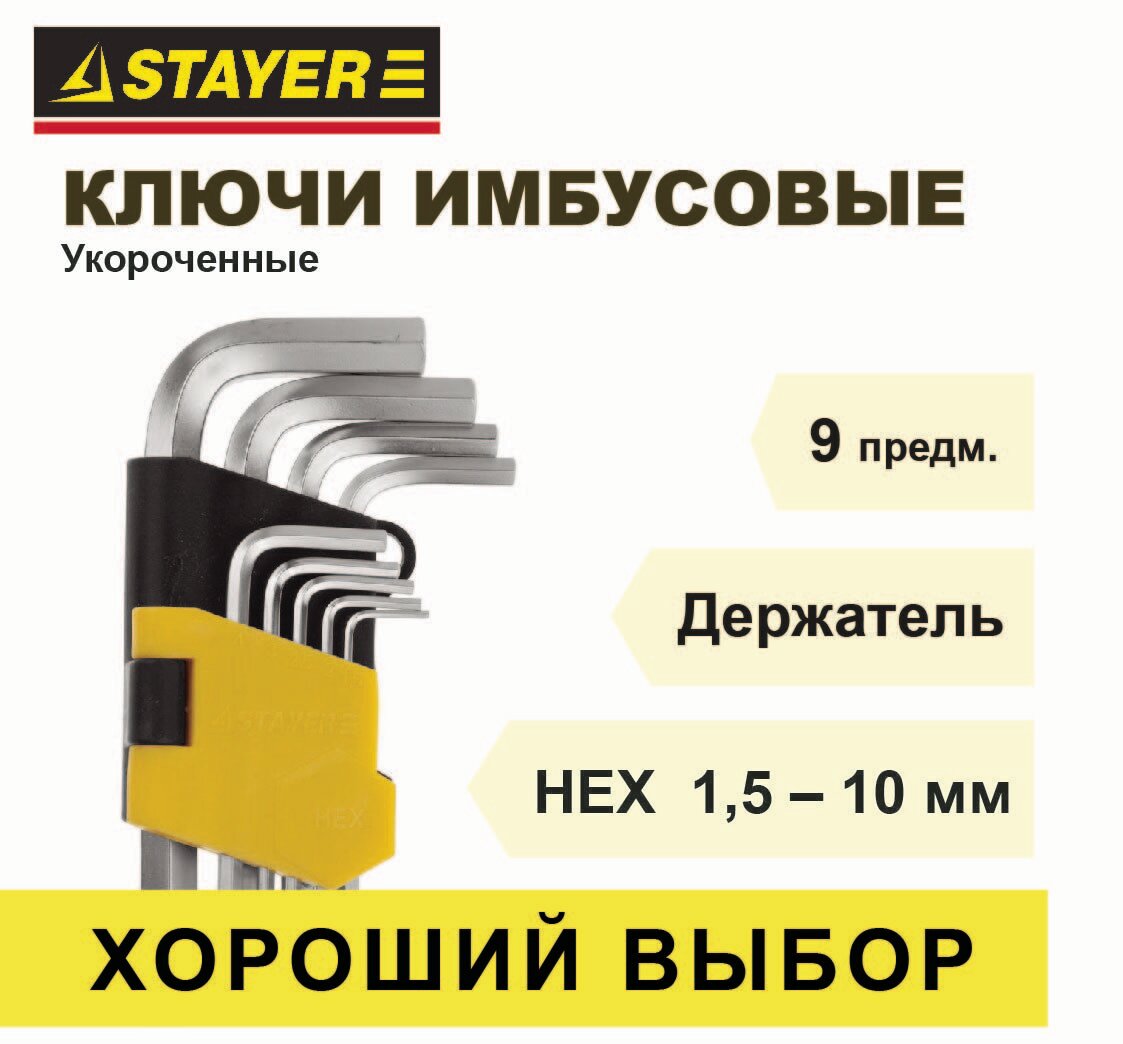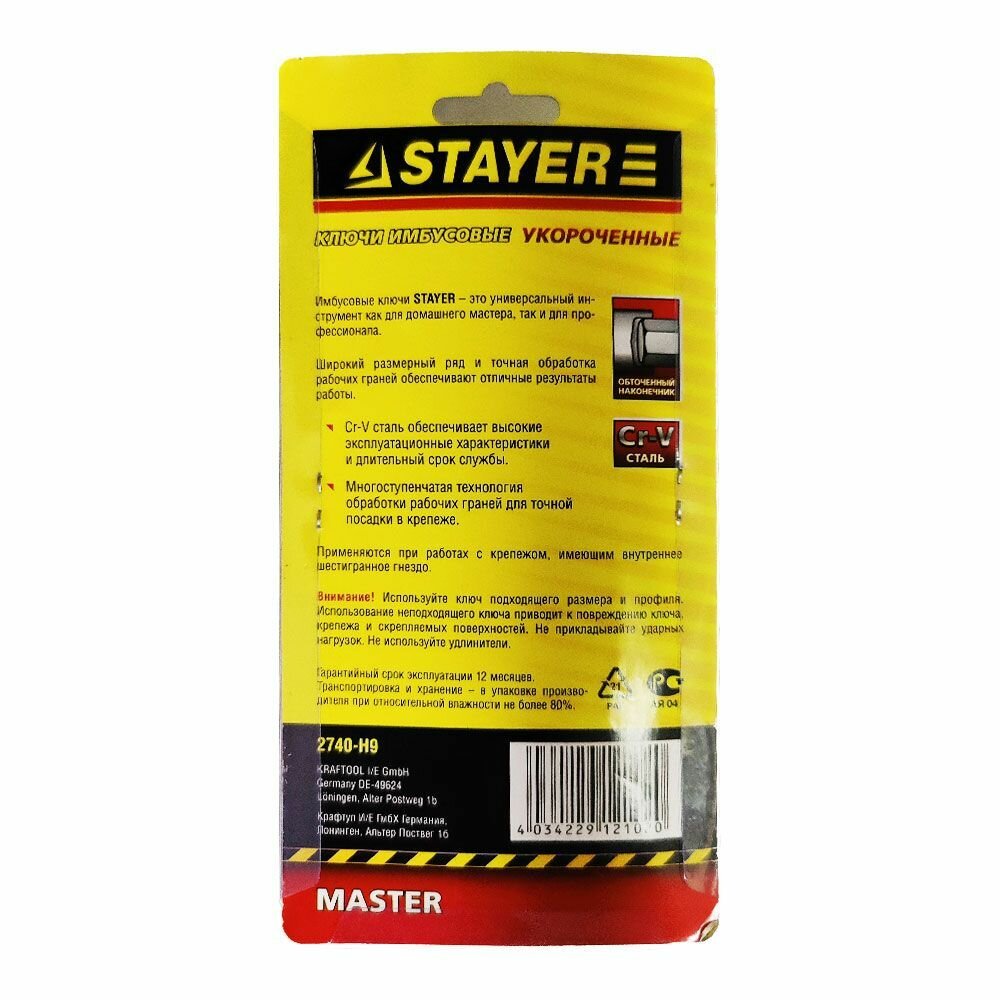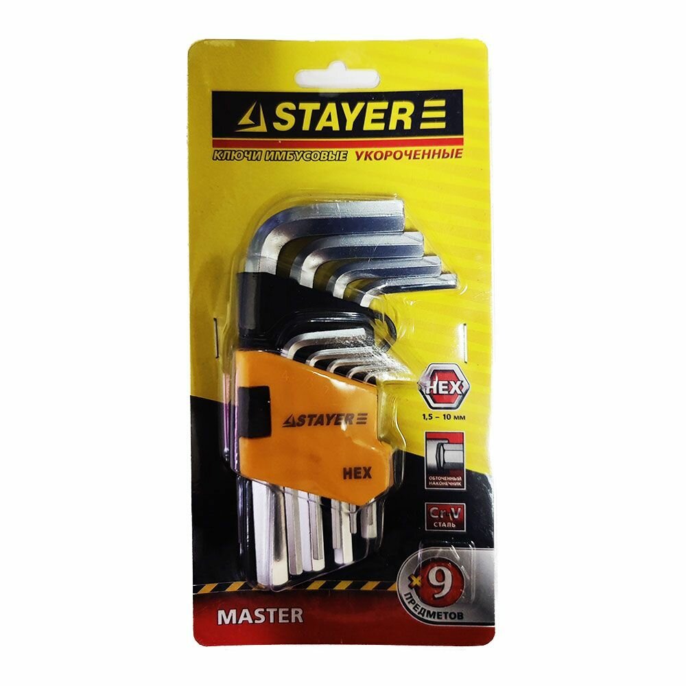 | Подробный состав комплекта | Набор имбусовых коротких ключей 9 предметов STAYER MASTER 2740-H9 |