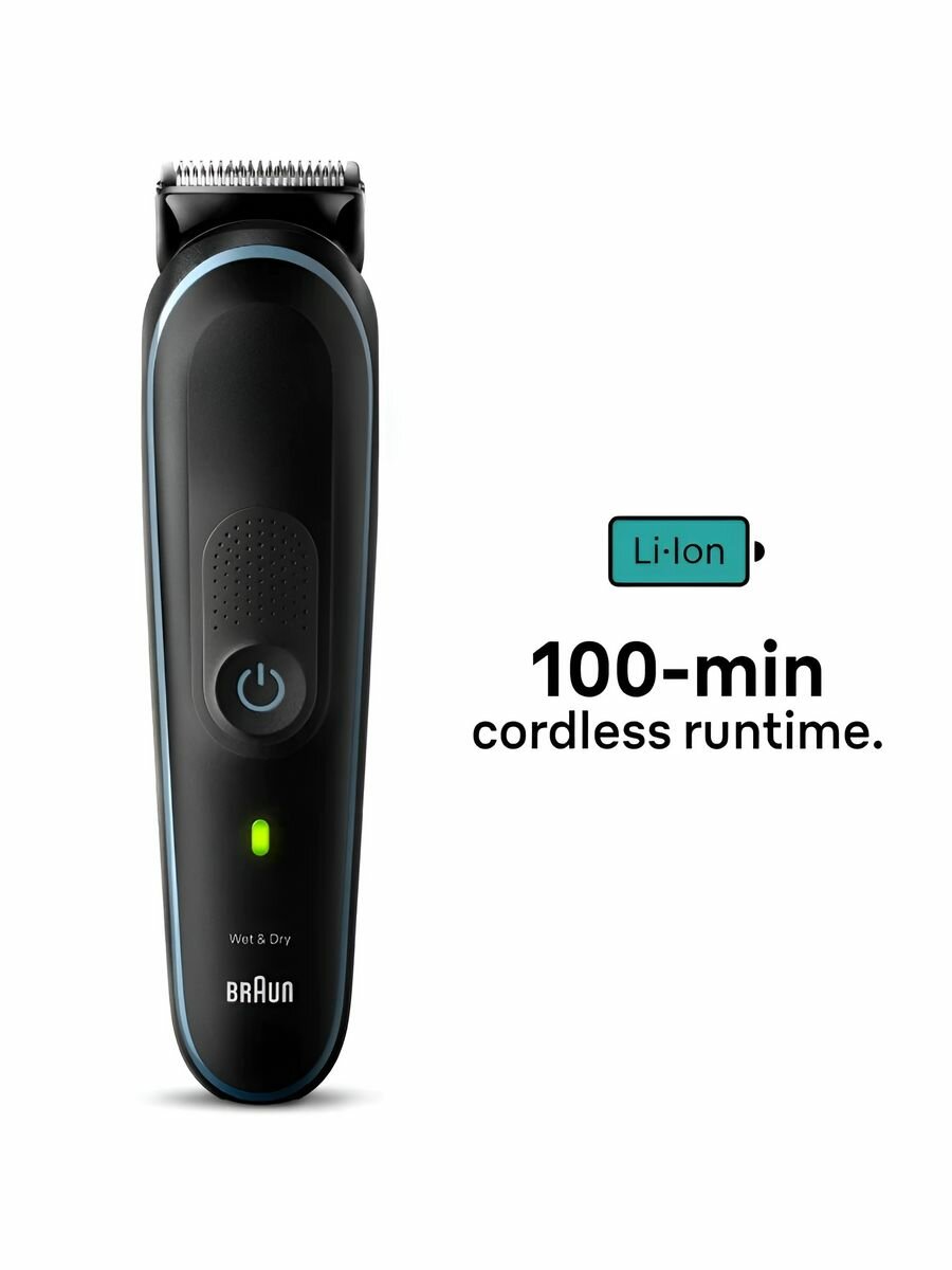 9-в-1: мужской триммер для бороды Braun MGK5 подстригает волосы любой длины. От стрижки бороды, лица, головы, ушей и носа до ухода за телом. Головка триммера имеет более широкую зону стрижки, срезая больше волос при каждом движении (по сравнению с предыдущими триммерами Braun). Получите свой результат за меньшее количество проходов. Прецизионная расческа, в которой на 20% меньше пластика, обеспечивает легкую стрижку усов, бородки, щетины или волос на теле. Оснащен острыми лезвиями на весь срок службы — для легкой, равномерной и эффективной стрижки волос и укладки волос любой длины. 100% водонепроницаемость, мощный литий-ионный аккумулятор, обеспечивающий время работы 100 минут.