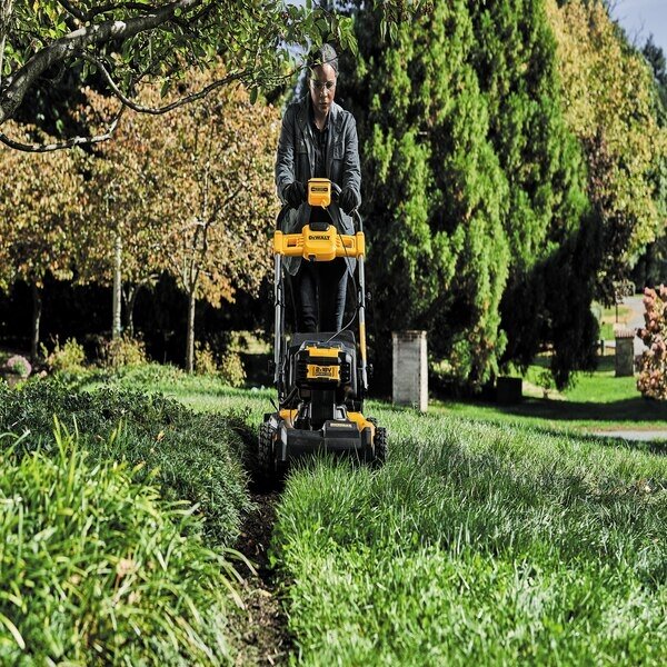 Профессиональная (может работать в режиме повышенной нагрузки и без остановки продолжительное время) самоходная аккумуляторная косилка 2-в-1 c функциями мульчирования и сбора газонной и дикорастущей травы в травосборник. Косилка имеет размер деки 56 см, и идеально подходит для газонов площадью от 10 до 20 соток, заменяя бензиновую технику. Эта косилка работает от 2 последовательно соединенных батарей 18 Вольт, обеспечивая мощность и время работы двигателя с напряжением 36 Вольт.