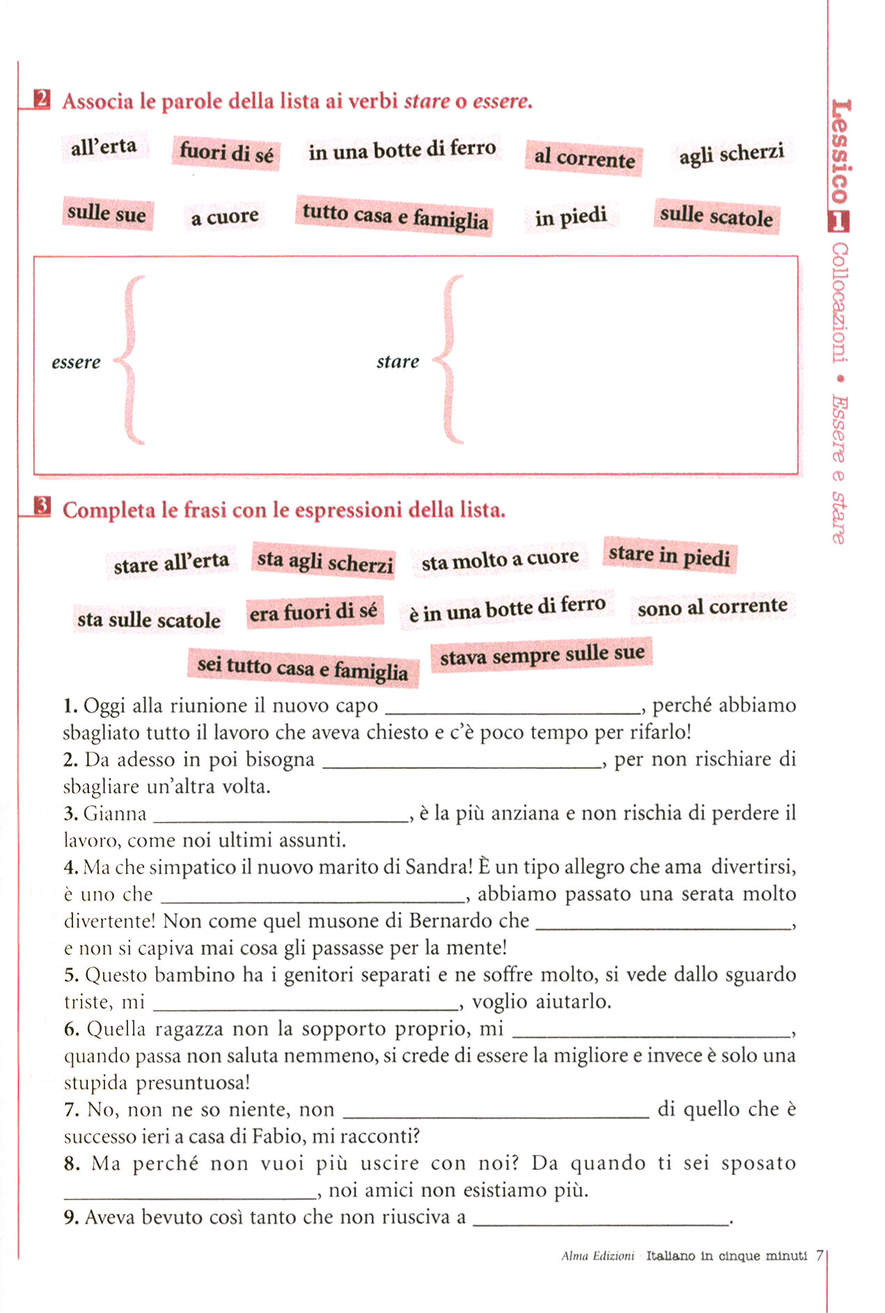 Italiano in cinque minuti - volume 2, e un eserciziario indirizzato agli studenti di livello B1-B2. Offre la possibilita di praticare la grammatica e di cimentarsi con il lessico attraverso una serie di esercizi rapidi, sintetici e motivanti. Gli esercizi, vari per tipologia, privilegiano l'approccio testuale, stimolando l'osservazione e la fissazione delle regole nella memoria a lungo termine. Ogni argomento grammaticale puo essere esercitato rapidamente e nelle occasioni piu varie: in classe, in autoapprendimento, ma anche subito prima di un esame o alla fermata dell'autobus. Una particolare attenzione e riservata al lessico: i contenuti lessicali - modi di dire, espressioni di routine, espressioni idiomatiche - sono presentati secondo criteri in linea con le riflessioni piu recenti della glottodidattica, proponendo una visione moderna della lingua, rivolta a sviluppare il lessico attivo di ogni studente.