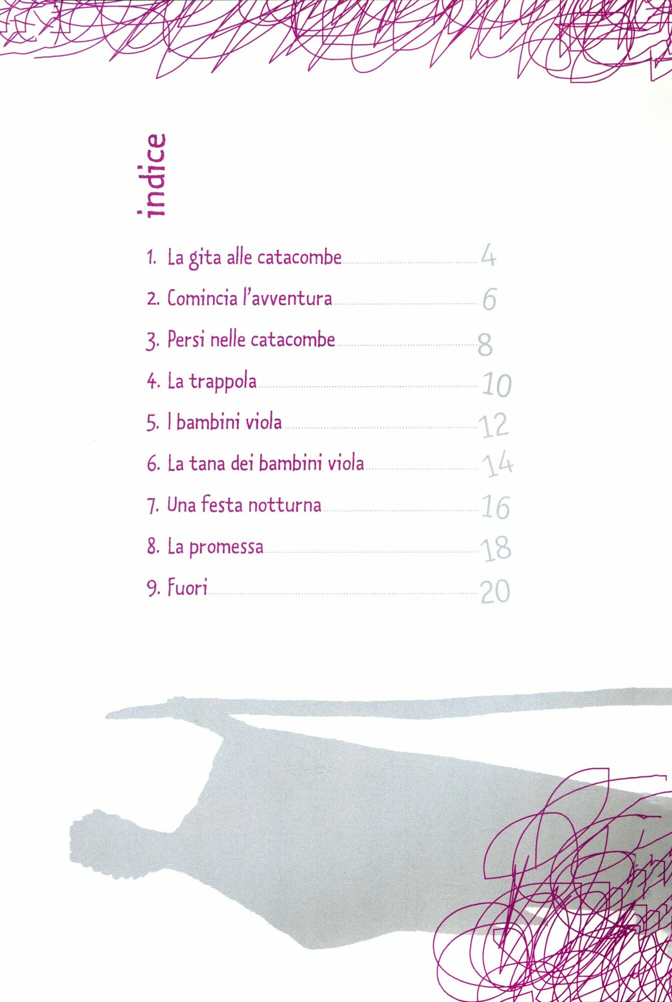 Che cosa succedera a Ilaria, Riccardo e Pedro? Chi sono i bambini viola? E chi e il misterioso Cristall? Persi nelle catacombe di Roma, i tre ragazzi scopriranno un mondo affascinante ed emozionante e vivranno un’esperienza indimenticabile.
