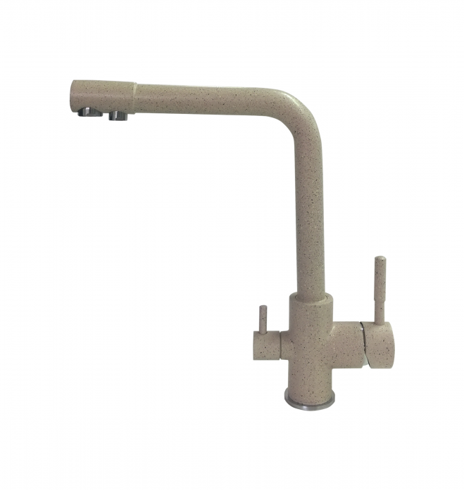 Это восхитительная вещь. Любимый оттенок многих дизайнеров работает со всем цветовым спектром. Гармонично сочетается с раковиной того же цвета и создает эксклюзивную атмосферу. Хорошая высота, радиус поворота, выход для питьевой воды дарят удобство и простоту использования.