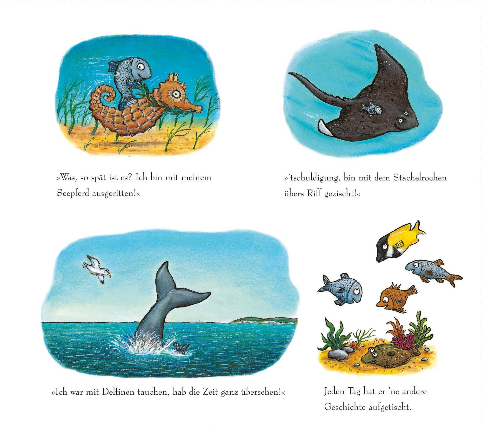 Flunkerfisch ist klein, doch seine Fantasie ist gro?. Jeden Tag erzahlt er eine andere unglaubliche Geschichte, warum er zu spat in die Schule kommt: dass er auf einem Seepferdchen ritt, mit Delfinen tauchte oder in einer Schatztruhe gefangen war. Doch das Leben im Meer ist voller Gefahren. Da ist es nur gut, wenn man ein fantasievoller kleiner Fisch ist. Eine Ode an die Fantasie von kleinen Kindern. Ein Klassiker zum Vorlesen von den Schopfern des weltberuhmten »Gruffelo«.