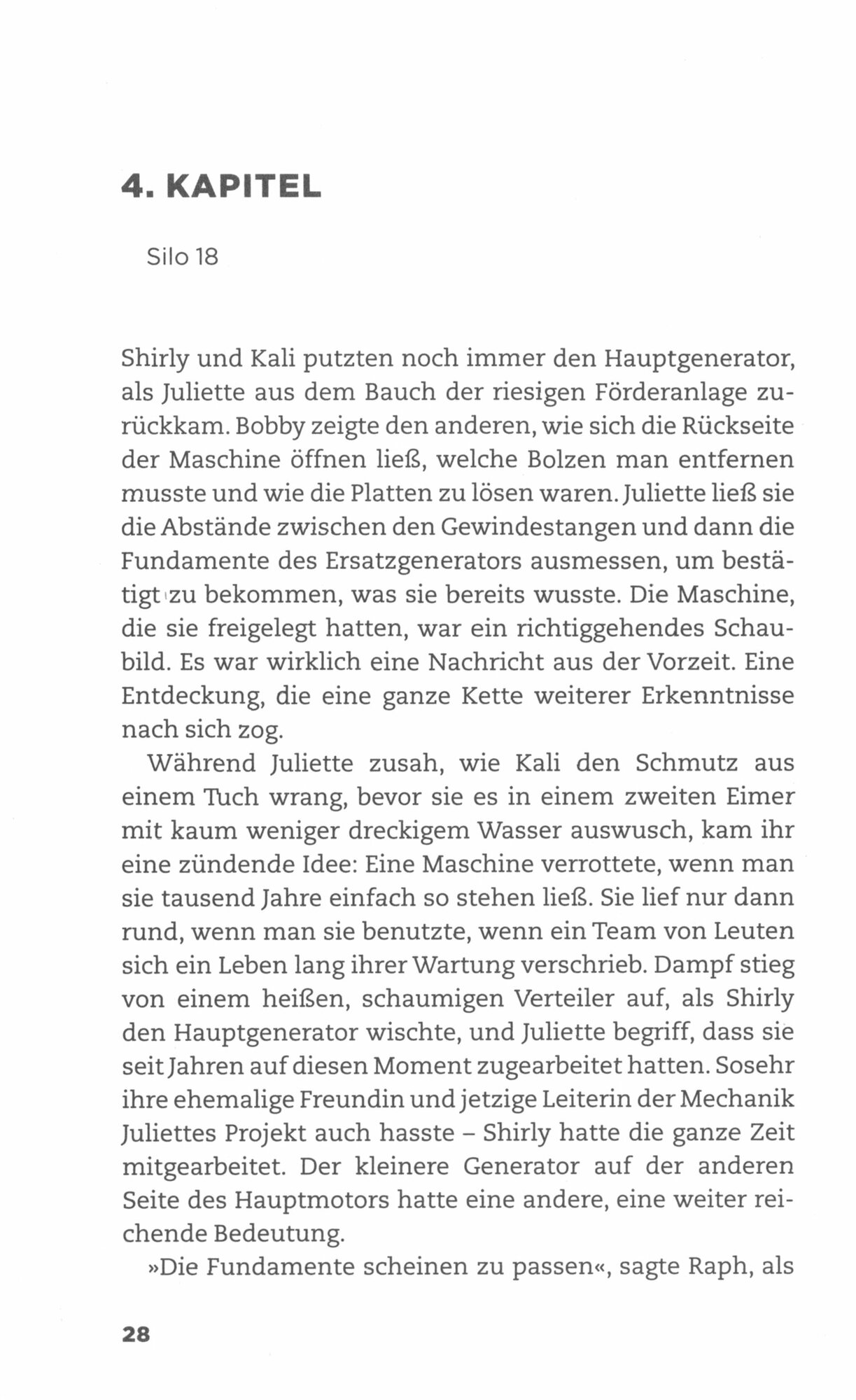 Juliette Nichols, die neue Herrin in Silo 18, bricht mit den jahrhundertealten Regeln der unterirdischen Gemeinschaft - und lasst den riesigen Bohrer demontieren, um ihn fur einen neuen Zweck einzusetzen. Denn Juliette wei?, dass ihr Freund Lucas und die anderen sterben werden, wenn sie nicht sofort handelt. Doch sie wei? nicht, dass ihr die gro?te Uberraschung noch bevorsteht ...