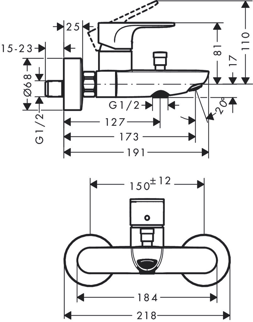 · выступ 173 мм· вид соединения: S-образные эксцентрики· межосевое подключение: 150 мм ± 12 мм· тип струи смесителя: обычная струя· максимальный расход воды при 3 бар: 20,4 л/мин· расход воды изливом на ванны при 3 барах: 20,4 л/мин· расход воды ручным душем при 3 барах: 15,5 л/мин· керамический узел смешивания· регулируемое ограничение температуры· дивертер с переключателем вакуумного типа· со встроенной защитной комбинацией EN1717· с шумопоглотителем· подходит для проточных водонагревателей· мин. рабочее давление 1 бар· макс. рабочее давление: 10 бар