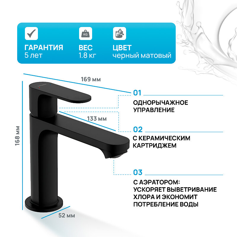 Смеситель для раковины hansgrohe Rebris S 110 со сливным гарнитуром 72517670 матовый черный 72517670/HG
