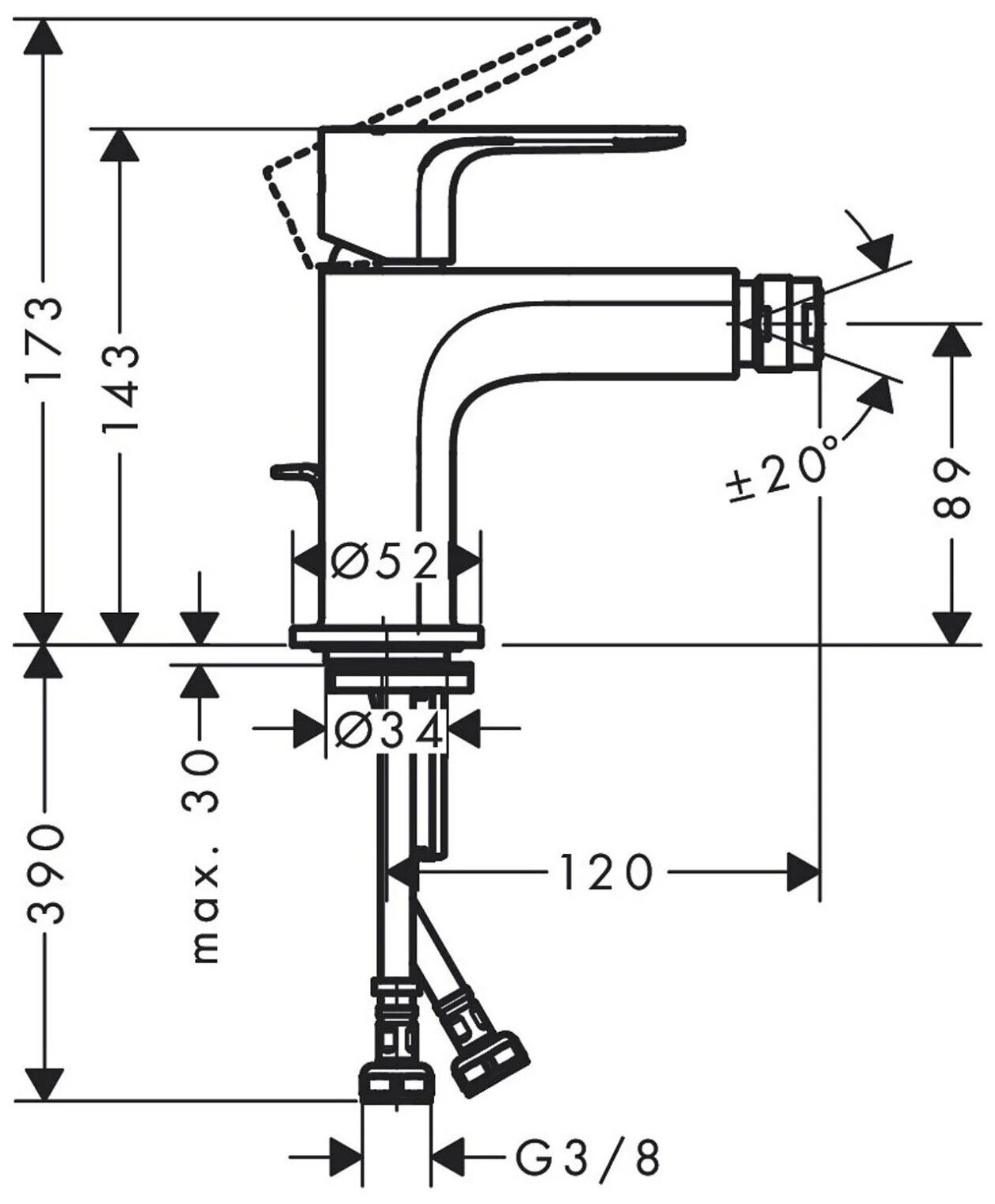Смеситель для биде hansgrohe Rebris S со сливным гарнитуром 72210000 хром 72210000/HG