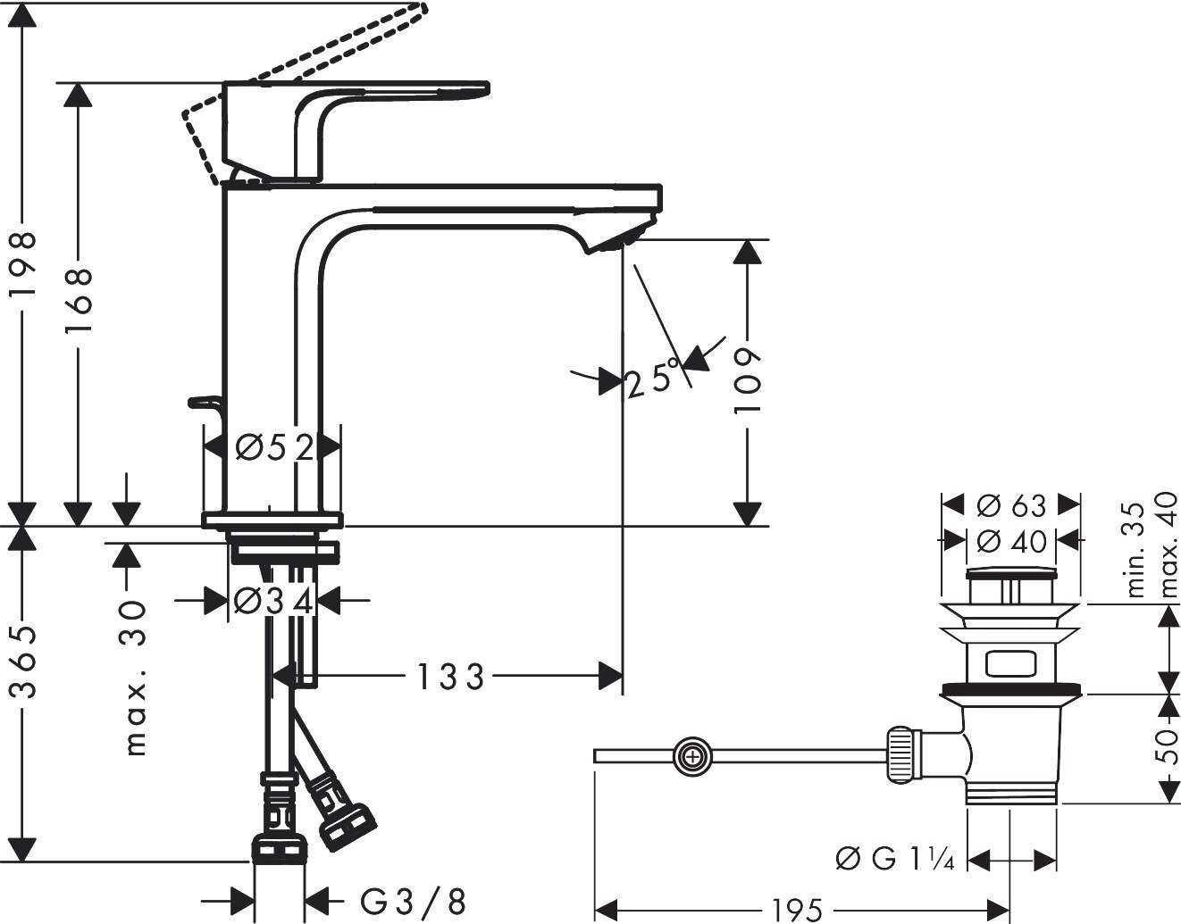 | Диаметр отверстия в раковине | 34 |