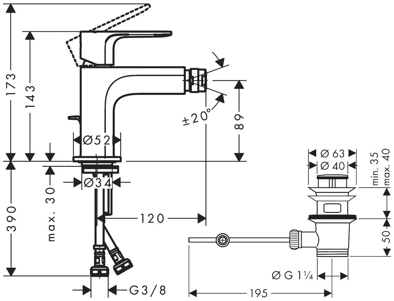 Сервис сравнения цен СкидкаГИД предлагает сравнить цены на товар «Смеситель для биде hansgrohe Rebris E со сливным гарнитуром 72211670 матовый черный 72211670/HG»