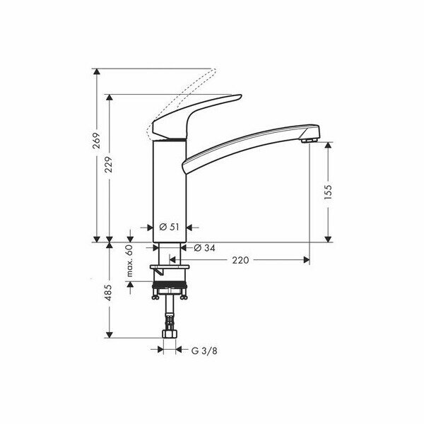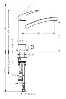 Смеситель для кухонной мойки hansgrohe Focus M41 200 с запорным вентилем 31803000 хром 31803000/HG
