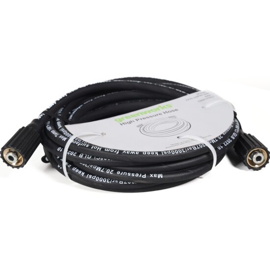 Шланг 7,6 м для мойки высокого давления Greenworks. Максимальное давление 310 бар.Два резьбовых соединения 22/14 мм.Подходит для моек Greenworks c максимальным давлением до 310 бар: 5106207, 5106807, 5106007, 5106107.