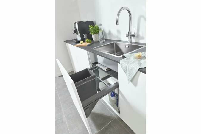 Состав: выдвижные направляющие и противоскользящий коврик Для Систем раздельного сбора мусора GROHE Blue 40 980, 40 981, 40 982 или 40 983, приобретается отдельно.