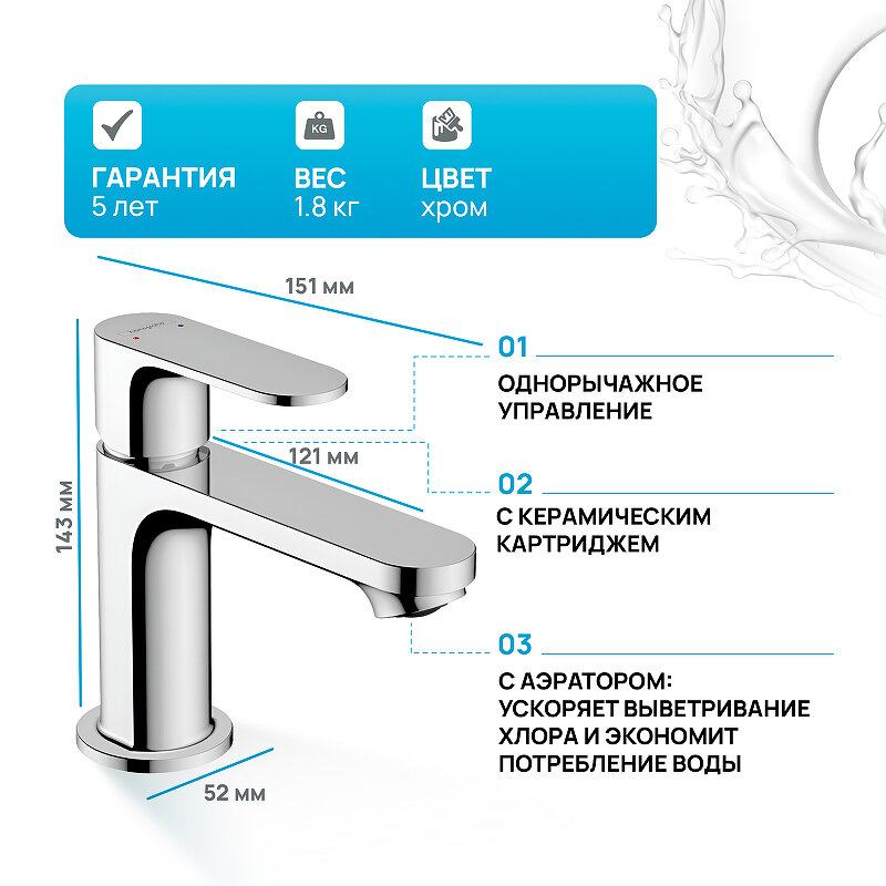 Смеситель для раковины hansgrohe Rebris S 80 со сливным гарнитуром 72510000 хром 72510000/HG