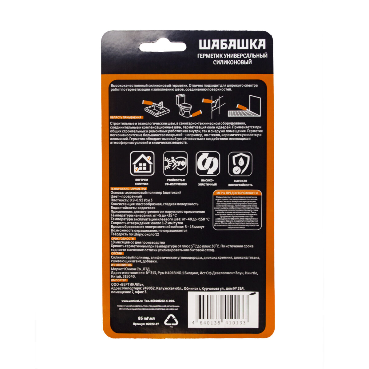 Герметик силиконовый Шабашка универсальный прозрачный 85 мл