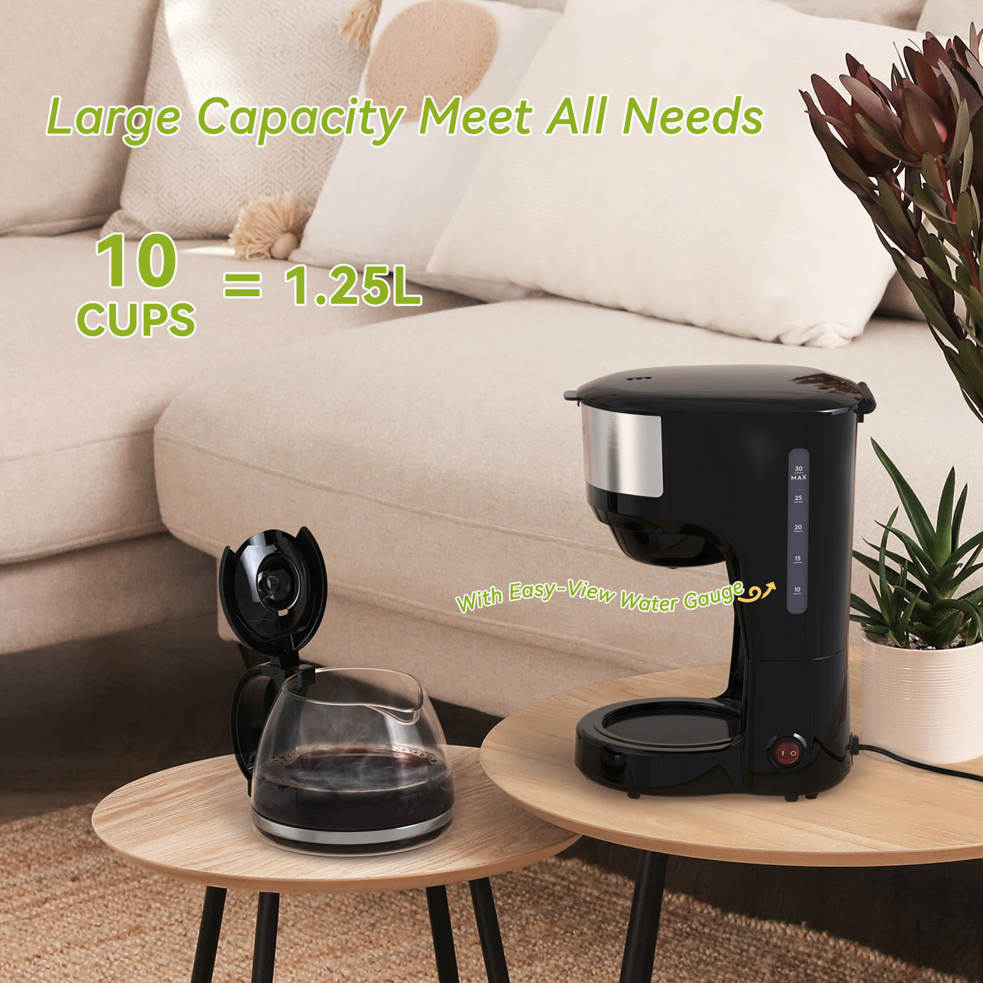 | Описание | Стеклянный кофейник рассчитан на 10 чашек, Автоподогрев |