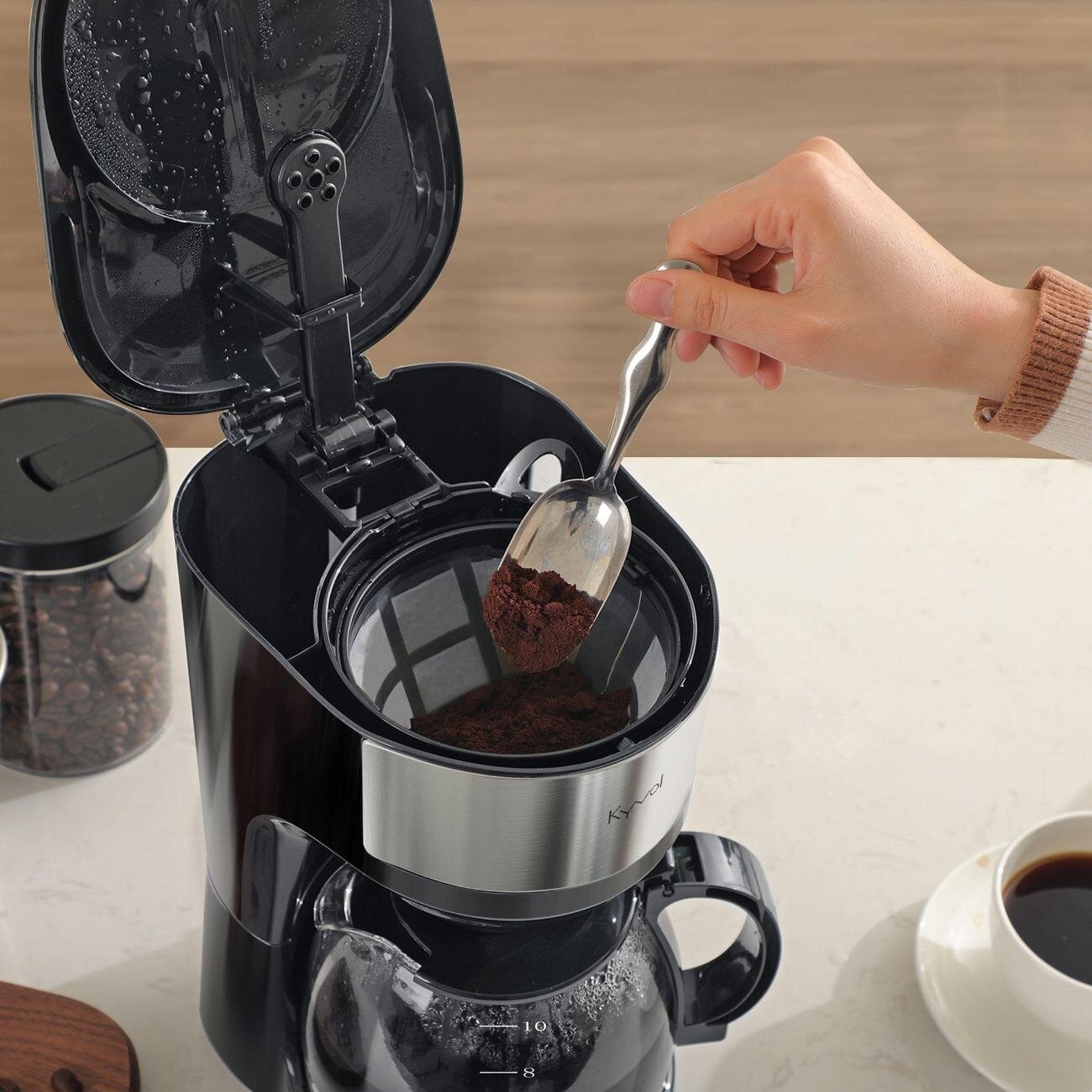 Кофеварка капельная Kyvol CM-DM102A оборудована колбой объемом 1,25 л, которая рассчитана для 10 порций. Для приготовления бодрящего и ароматного напитка используются молотые зерна. Технология работы позволяет максимально раскрыть вкусовые качества продукта. Стеклянное окошко с градуированной шкалой помогает налить необходимое количество воды. Управление осуществляется посредством механического переключателя