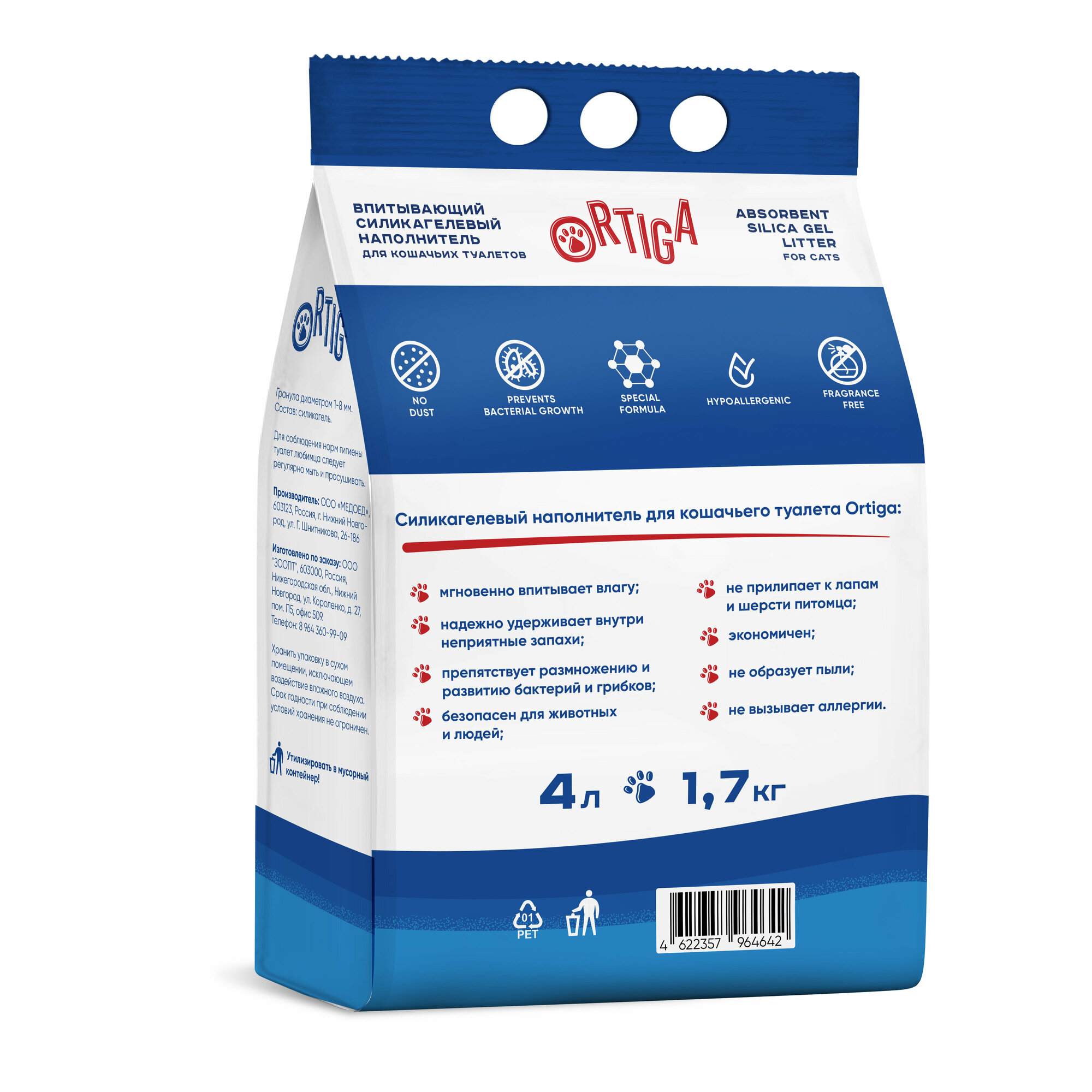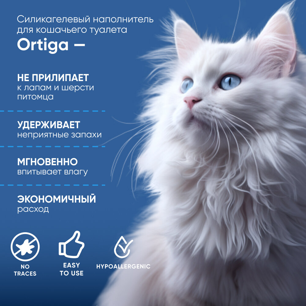 Силикагелевый наполнитель для кошачьего туалета Ortiga — это идеальное решение для владельцев кошек. Он мгновенно впитывает влагу, надежно удерживает неприятные запахи, не прилипает к лапам и шерсти питомца. Специальная формула наполнителя препятствует размножению патогенных бактерий, гарантируя безопасность вам и вашему любимцу. Наполнитель Ortiga подходит для всех типов кошачьих лотков, экономичен и прост в использовании.
