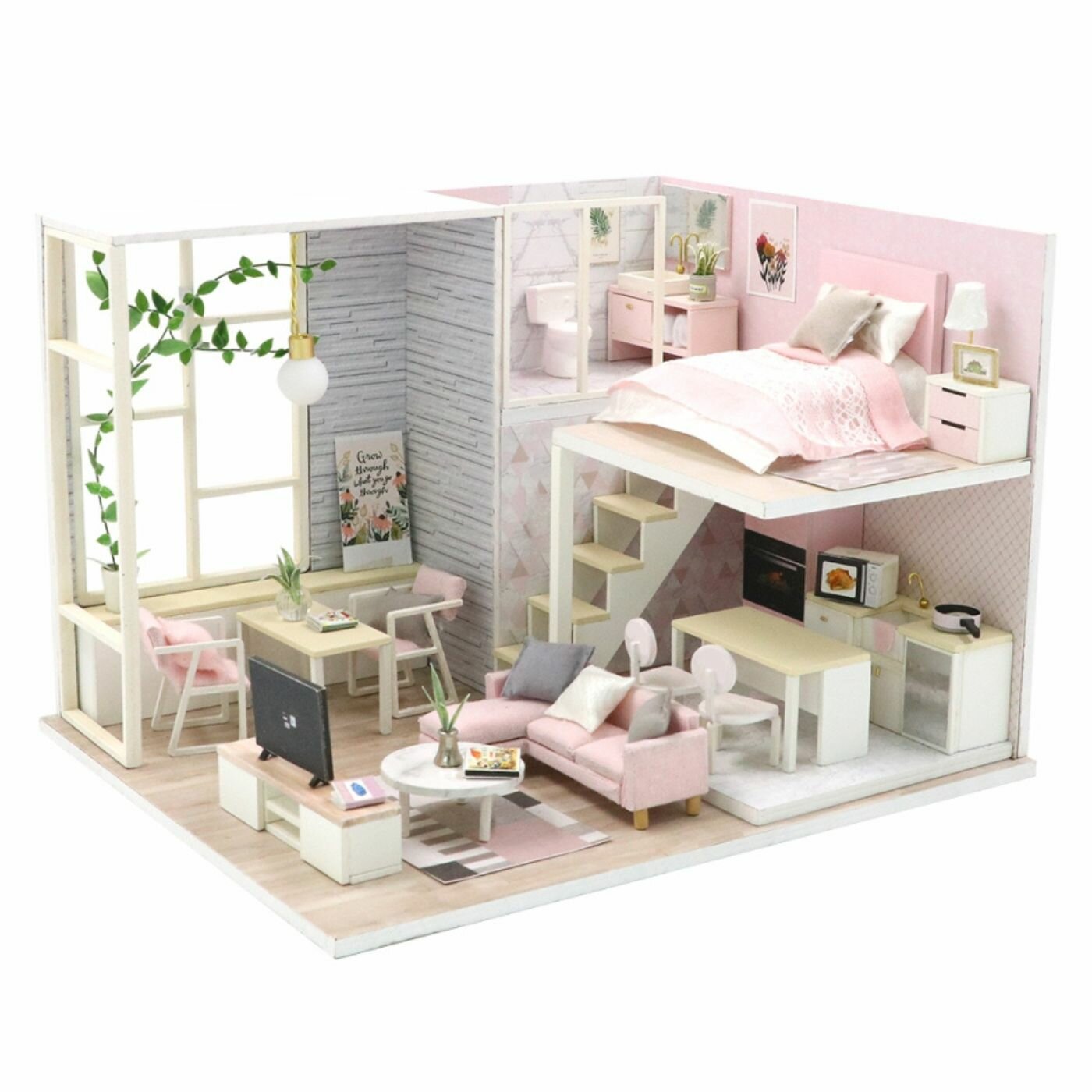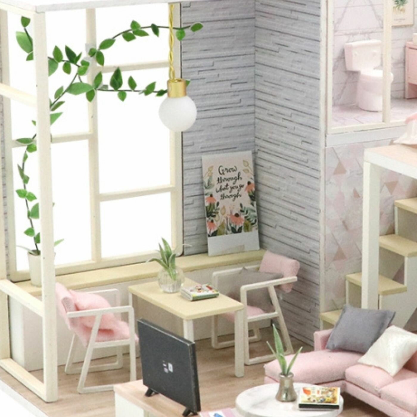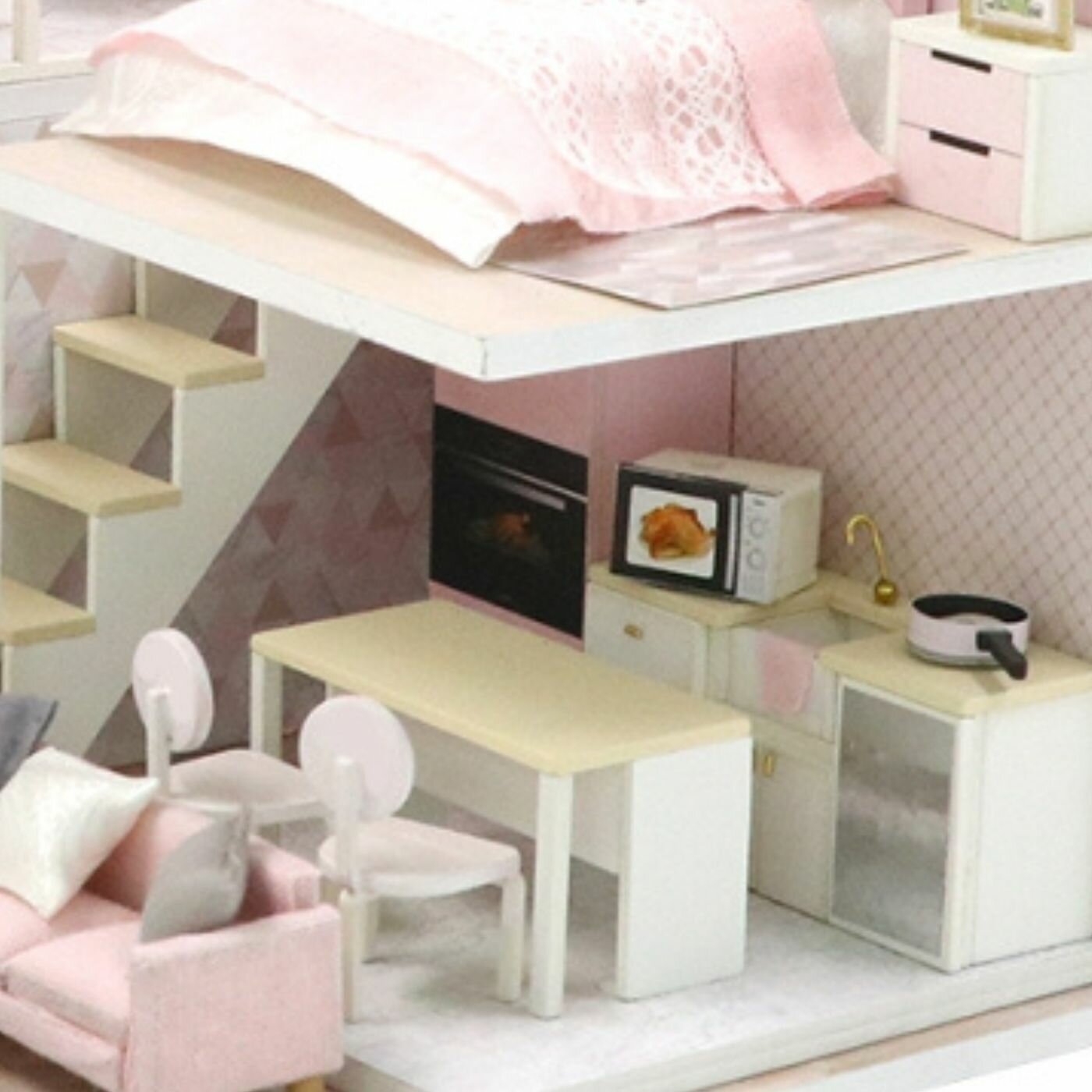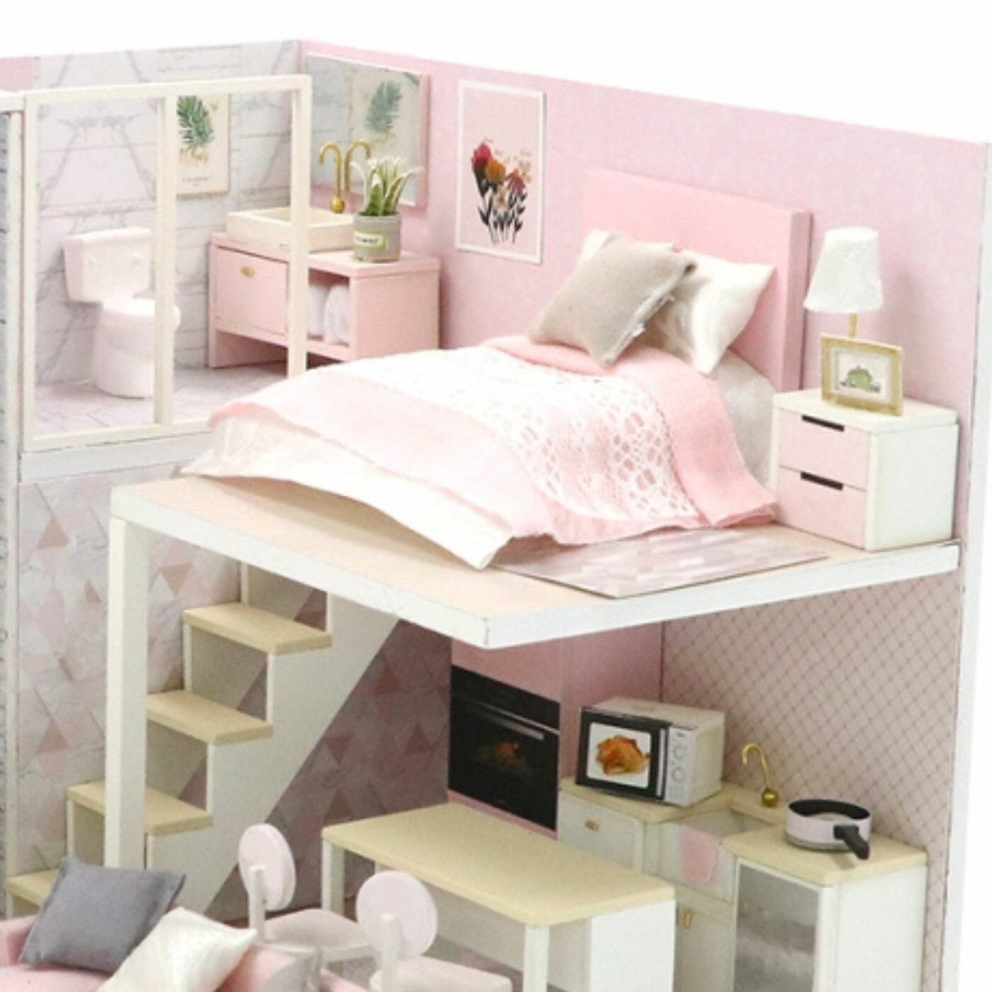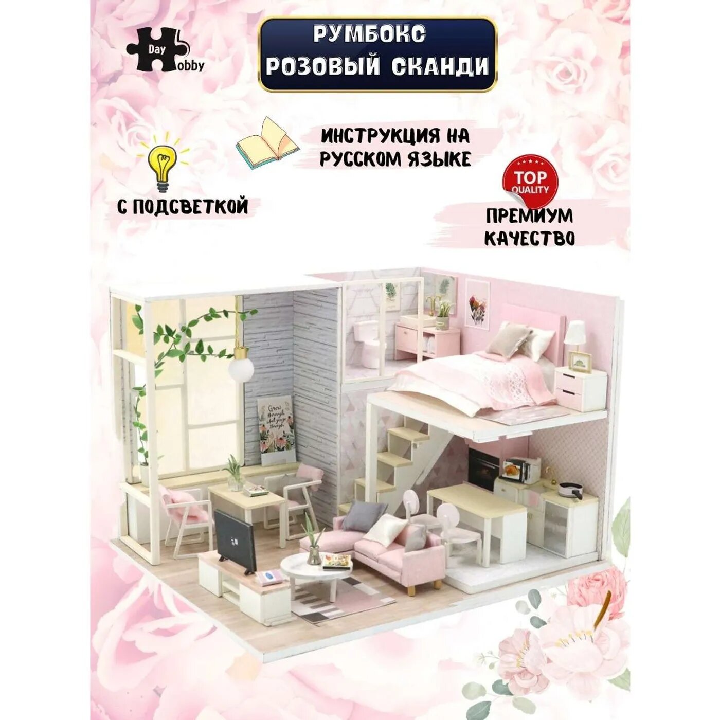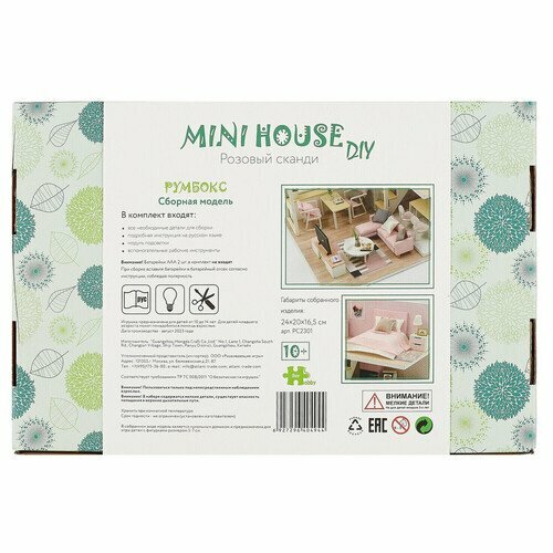 Румбокс Модель для сборки Интерьерный конструктор Mini House Розовый сканди Инструкция на русском языке PC2301 Hobby Day Румбокс Интерьерный конструктор Розовый сканди