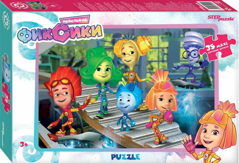 Пазл «Фиксики» состоит из 35 крупных деталей. На его картинке мы видим сразу шесть главных героев.