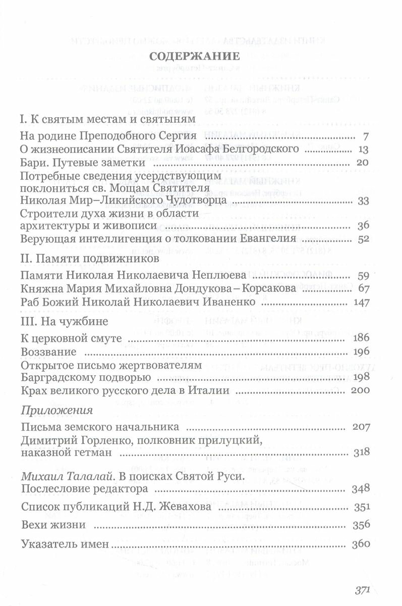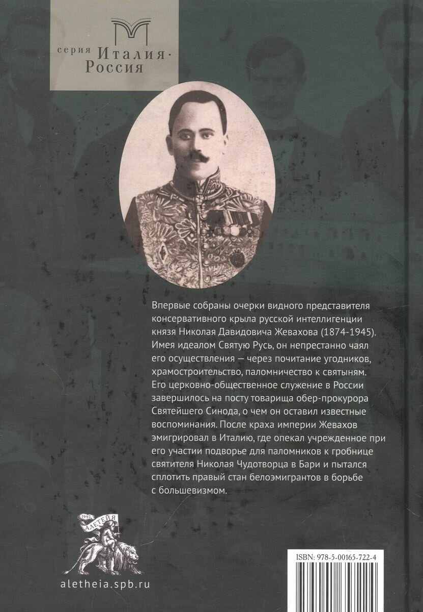 Впервые собраны очерки видного представителя консервативного крыла русской интеллигенции князя Николая Давидовича Жевахова (1874—1945). Имея идеалом Святую Русь, он непрестанно чаял его осуществления — через почитание угодников, храмостроительство, паломничество к святыням. Его церковно-общественное служение в России завершилось на посту товарища обер-прокурора Святейшего Синода, о чем он оставил известные воспоминания. После краха империи Жевахов эмигрировал в Италию, где опекал учрежденное при его участии подворье для паломников к гробнице святителя Николая Чудотворца в Бари.