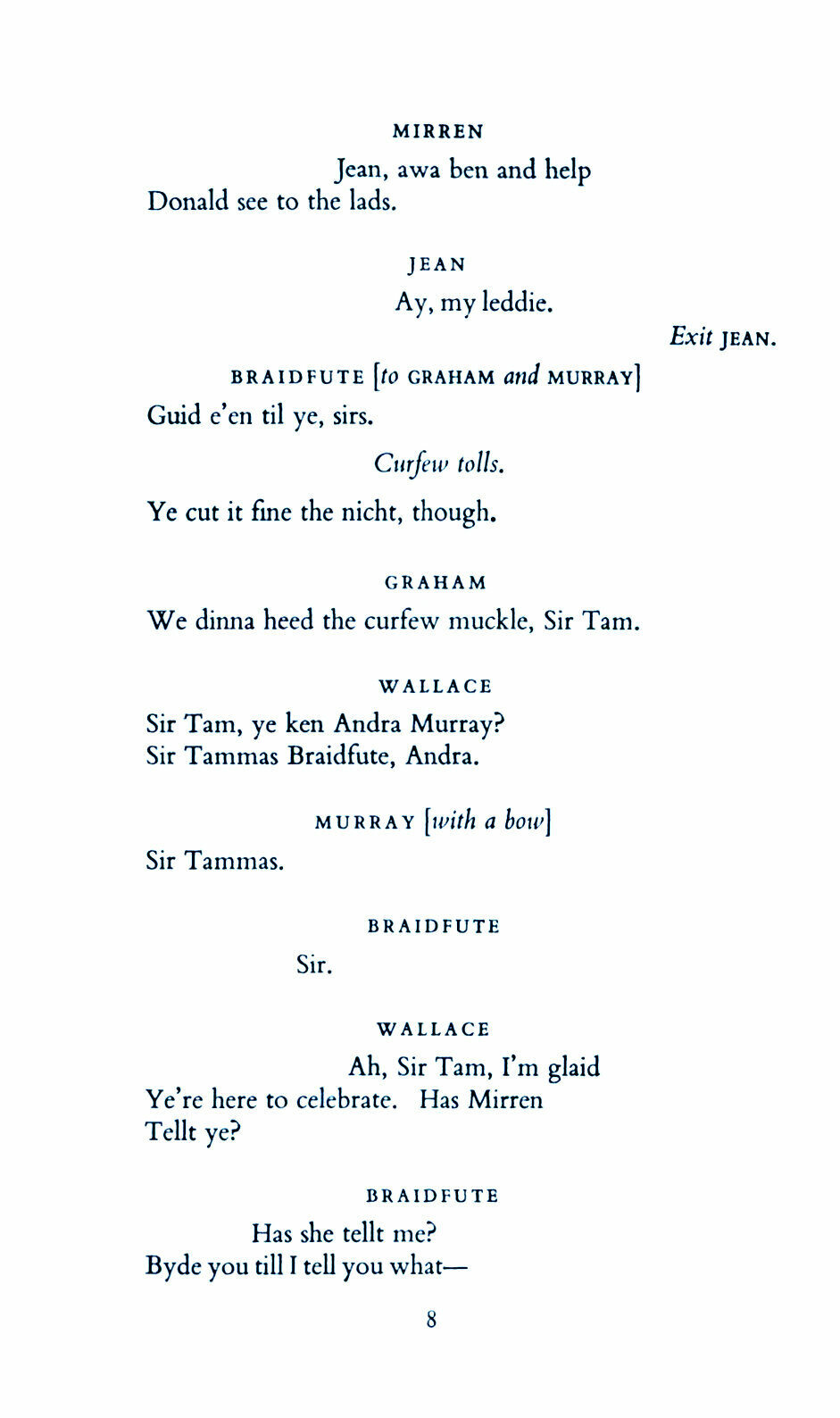 The Wallace is a historical play dramatizing the life of one of Scotland’s greatest heroes, William Wallace, whose revolt against England in the early fourteenth century led to his capture and execution, but, also through the continuing and successful rebellion of his successor, Robert the Bruce, to eventual Scottish independence.