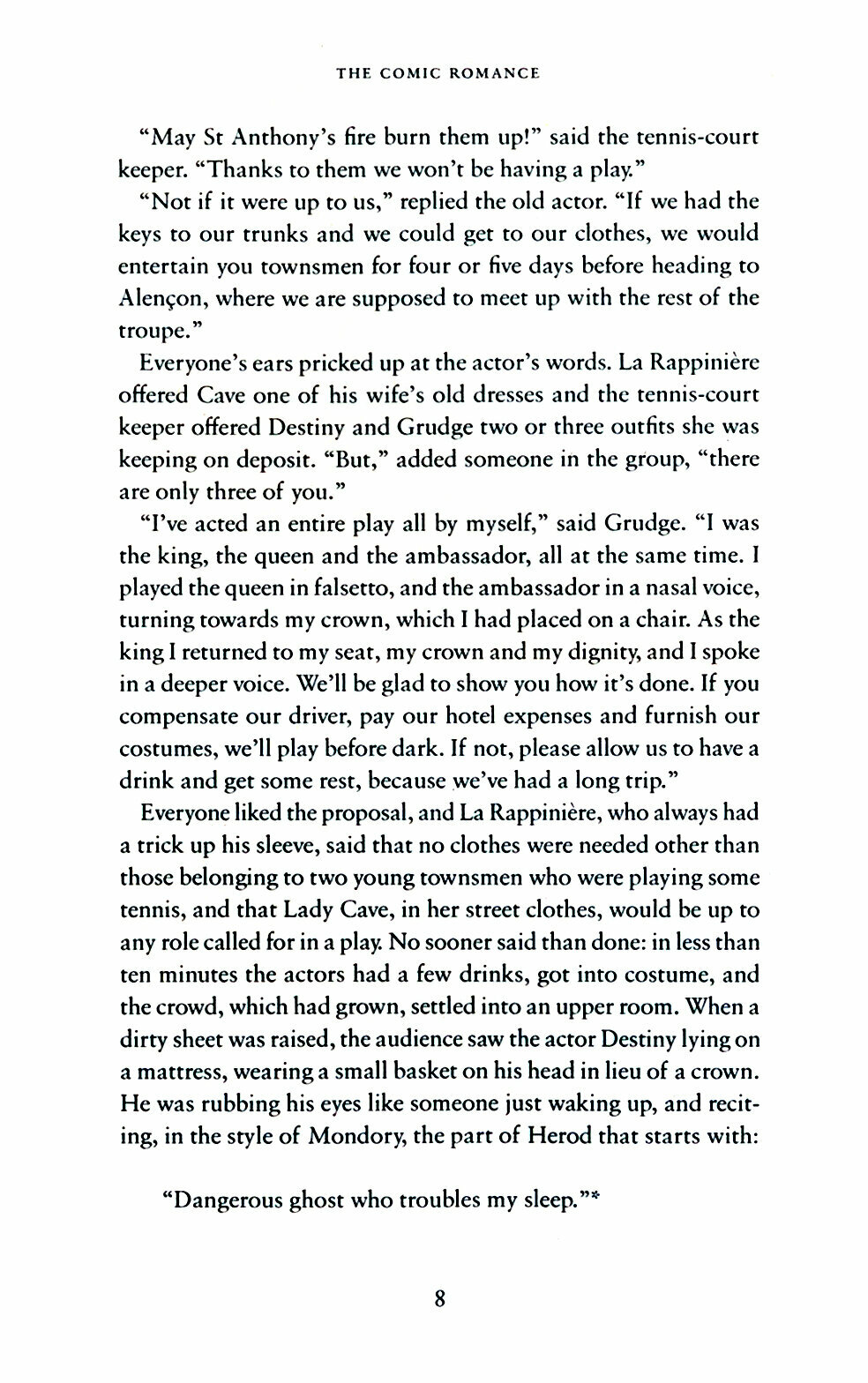 Paul Scarron’s masterpiece, The Comic Romance, recounts the adventures of a troupe of provincial itinerant actors, skilfully weaving multiple narrative strands – such as the personal histories and love stories of the central couples Destiny and Star and Leandre and Angelique, the farcical misadventures of the buffoonish Ragotin and various tales inspired by Spanish novelas – into a rich tapestry depicting side by side the realities of rural France and the realms of the imagination. A milestone of picaresque literature that would influence Henry Fielding, The Comic Romance spawned countless imitations when it was published and was championed in the nineteenth century by eminent literary figures such as Theophile Gautier and Gerard de Nerval.
