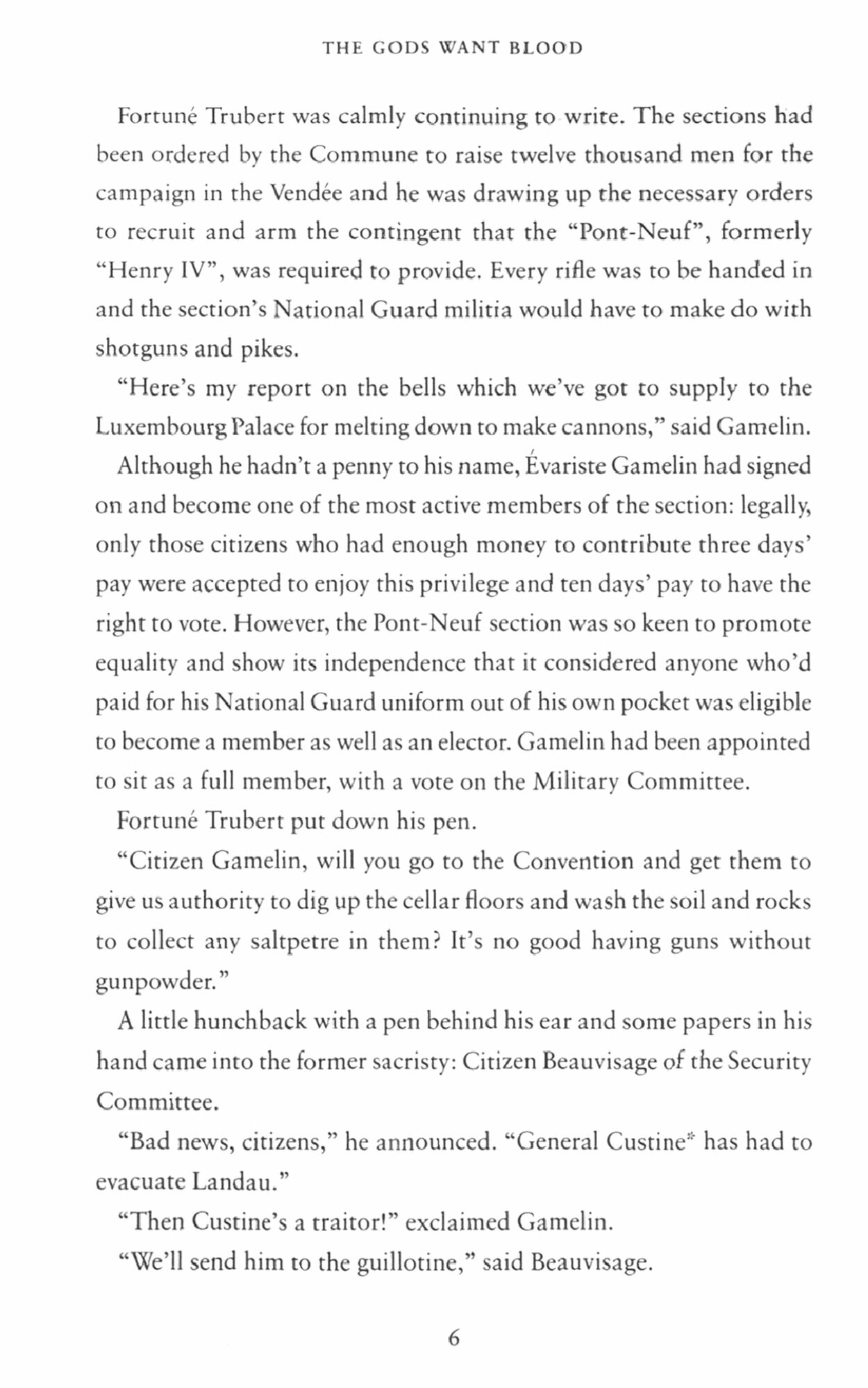 Set in Paris during the years of the Reign of Terror, The Gods Want Blood centres on the rise to power of the Jacobin sympathizer Evariste Gamelin, a young painter who becomes a juror on a local Revolutionary tribunal. Caught up in the bloodthirsty madness surrounding him, he helps to dispense cruel justice in the name of his ideals, while at the same time succumbing to his own petty instincts of revenge when he jealously pursues a rival for the affections of his lover Elodie.