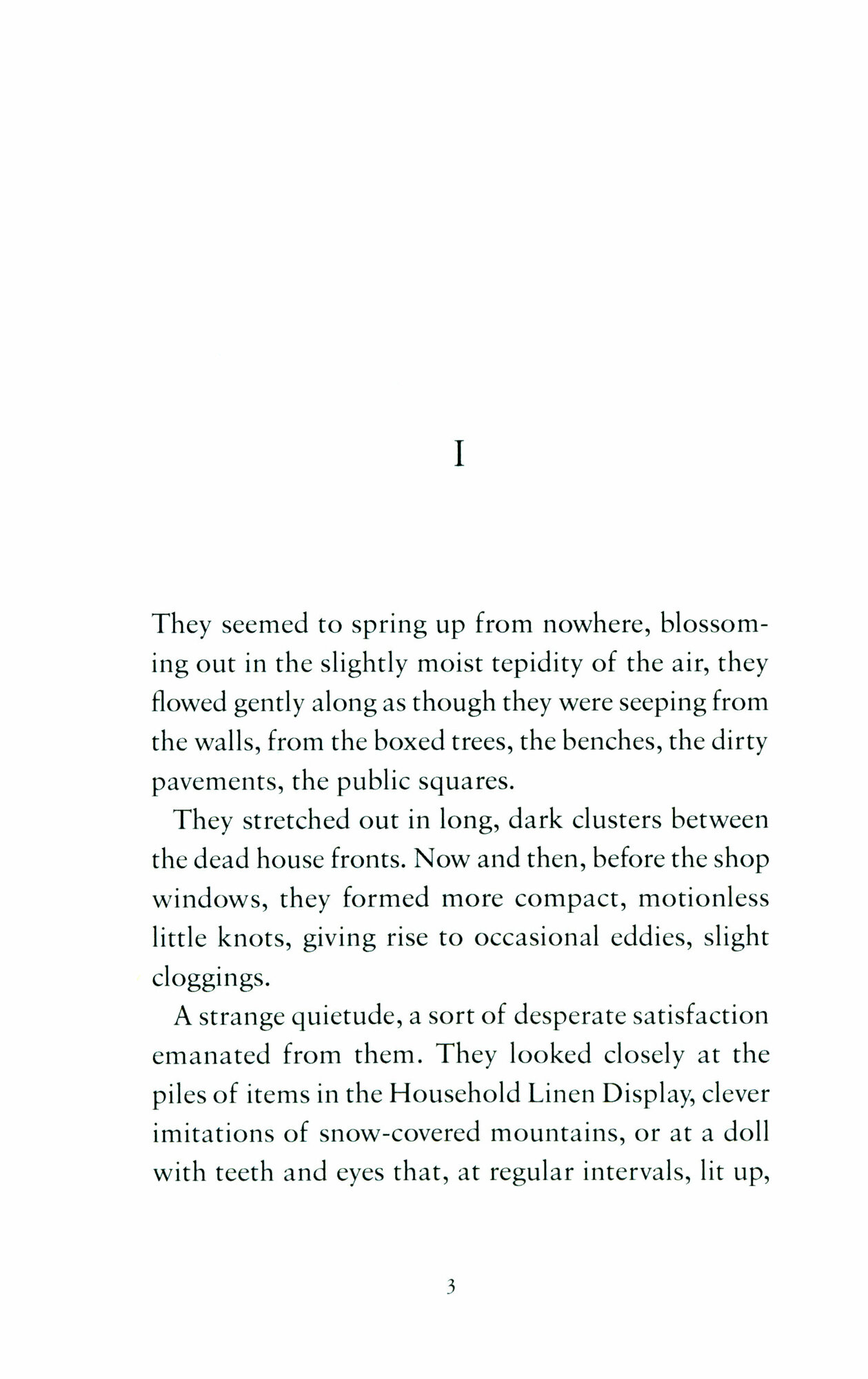 A series of sketches and observations of daily life – a crowd gathering in front of shop windows, an old man talking to his grandchild about death, a professor lecturing about Proust and Rimbaud, a woman concealing her disdain at a family gathering – Nathalie Sarraute’s first work of fiction places human existence under the microscope, revealing the dynamics at play between our thoughts and actions beneath the veneer of social convention.