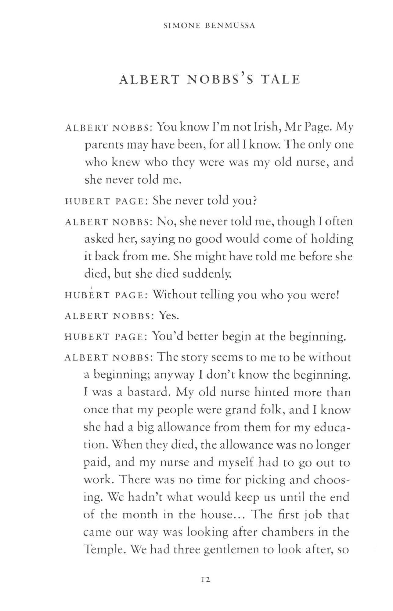 The Singular Life of Albert Nobbs (Benmussa Simone); Calder Publications, 2019